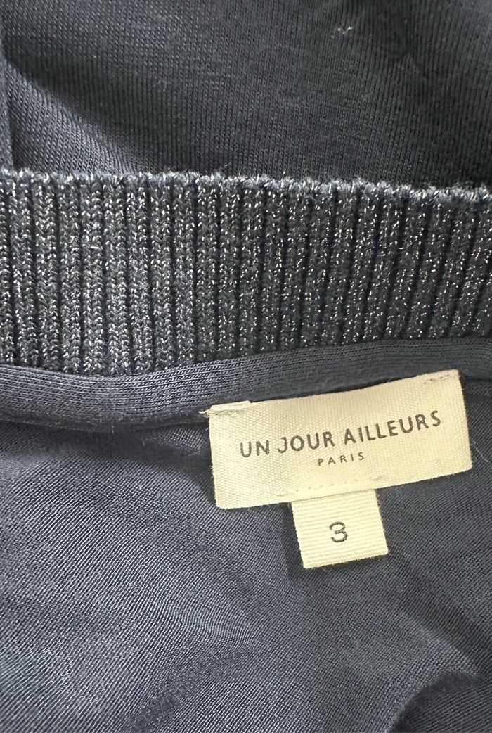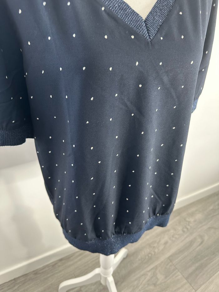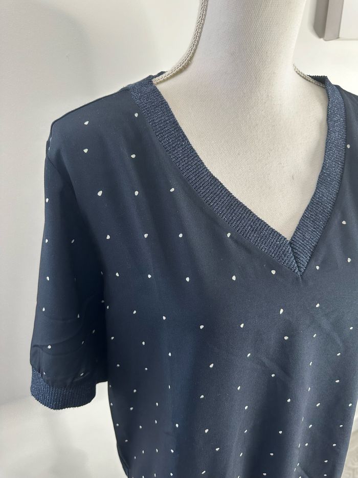 Blouse bleue marine et blanche pailletée à pois Un jour ailleurs UJA T3 40 L - photo numéro 3