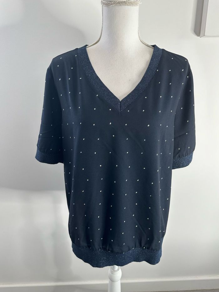 Blouse bleue marine et blanche pailletée à pois Un jour ailleurs UJA T3 40 L - photo numéro 1