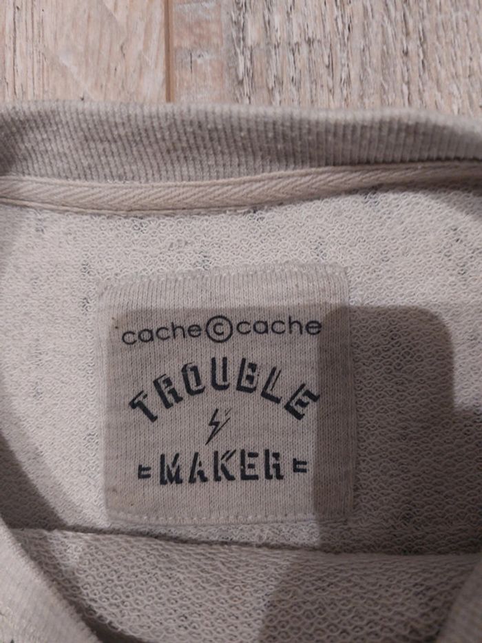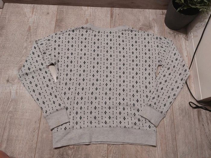 Joli sweat gris avec motifs bleus cache cache Taille 2 mais convient pour du 36. En bon état