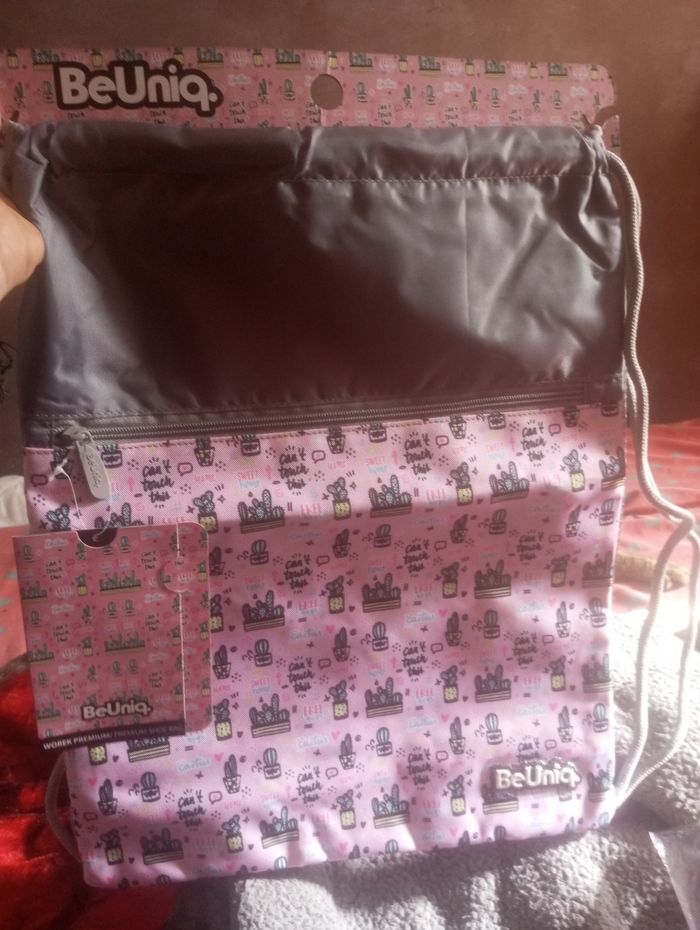 Sac a dos fille avec poche devant assez grand 46 cm de hauteur et 37 cm de largeur neuf couleur rose et gris