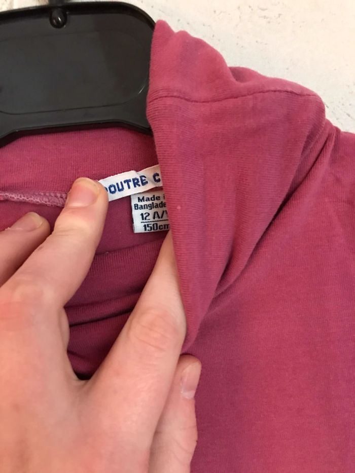 Haut à col roulé rose okaïdi (le nom de la fille était deja present car je l’ai acheté à une vintie qui n’avait pas decousus le tissus avec le nom) Taille 12 ans Très bon état