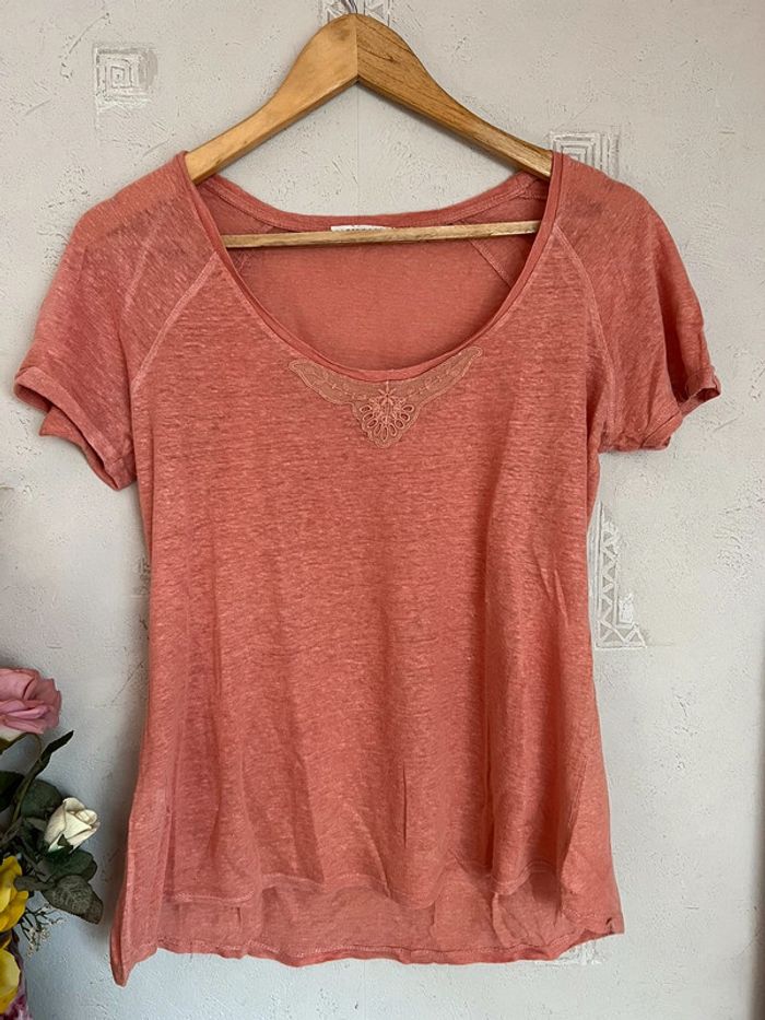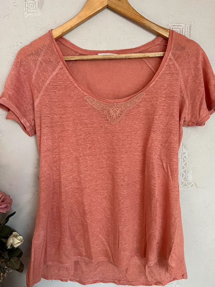 Tee-shirt corail/pêche de chez Promod - photo numéro 1