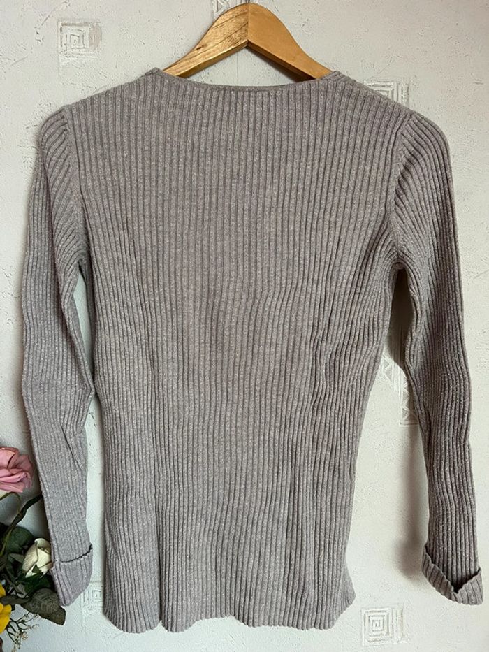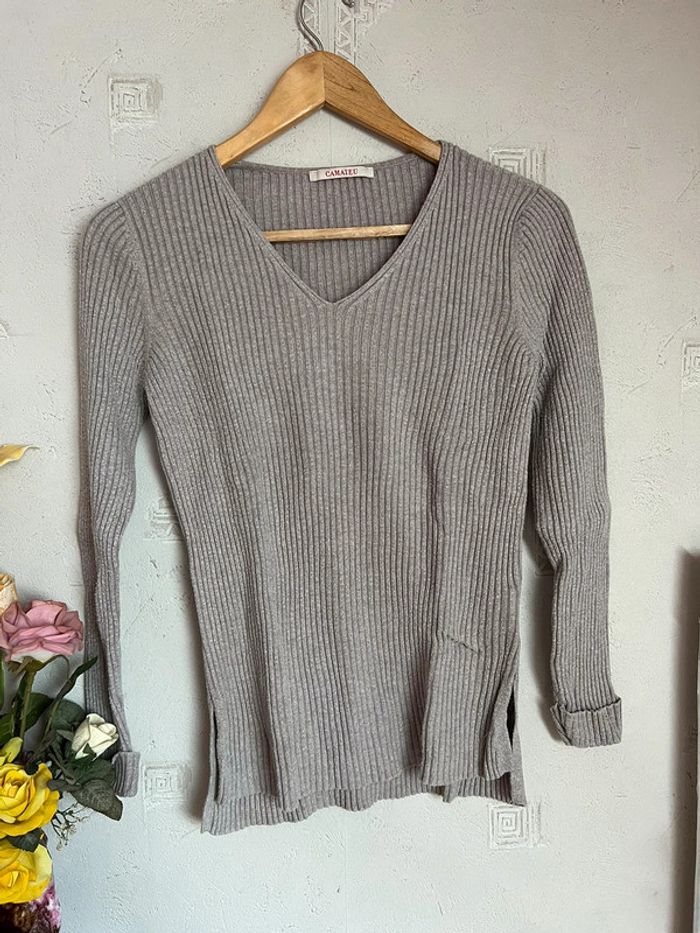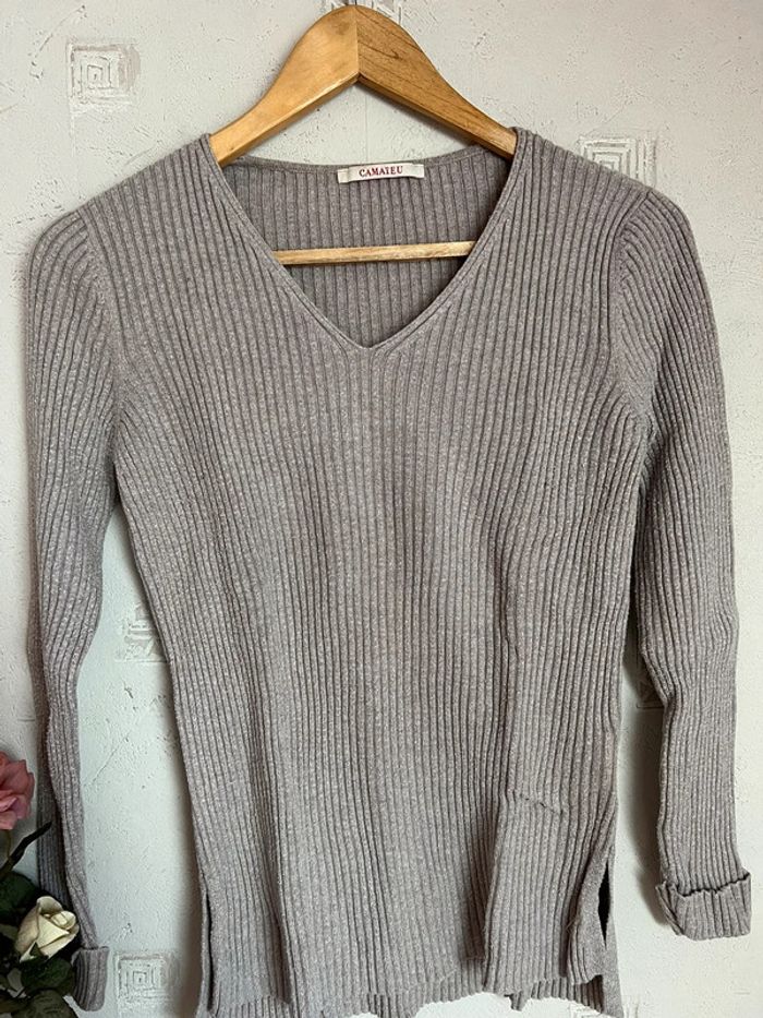 Pull léger beige/gris avec ouverture dans le bas de chez Camaïeu Taille 36 Très bon état