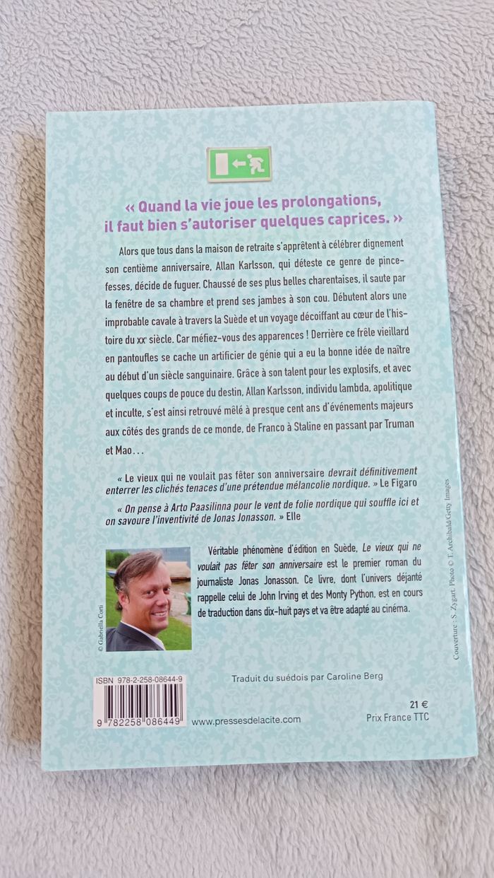 Roman format broché de Jonas Jonasson - Le vieux qui ne voulait pas fêter son anniversaire 454 pages Très bon état ( juste la 1ère page blanche découpé)