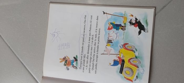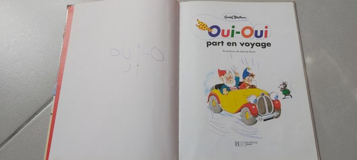 . Livre : Oui-Oui part en voyage Écriture sur la page rouge intérieure Mots entourés dans le livre #carineddilivres