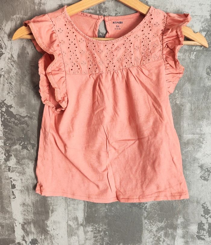 Tee shirt fille avec broderie /crochet et volants aux epaules