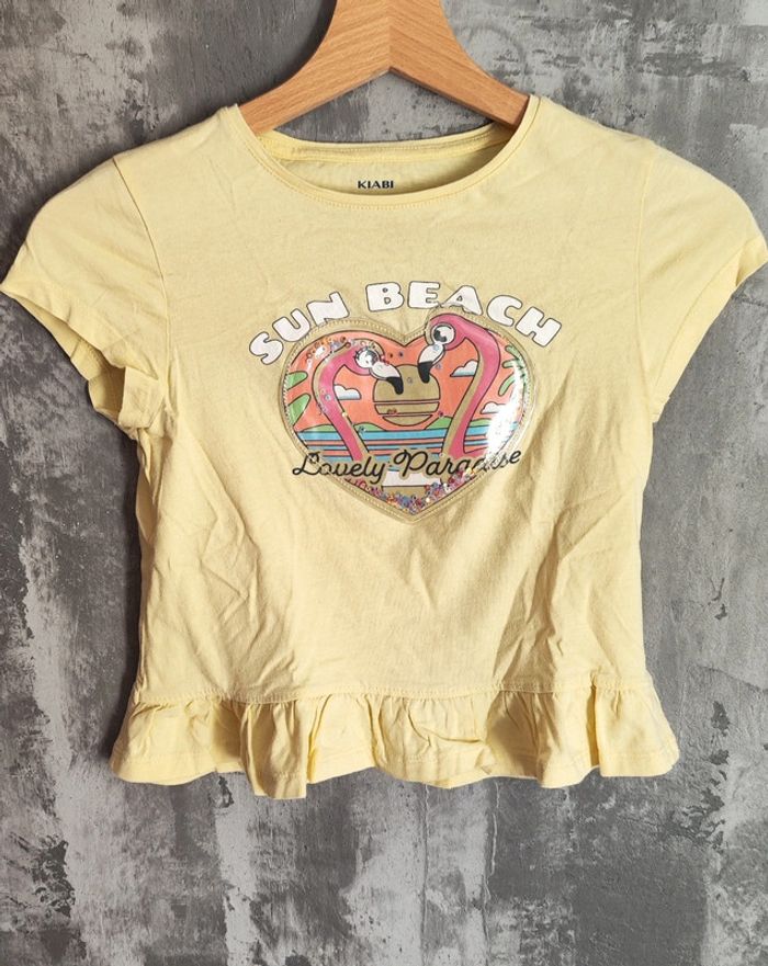 Tee shirt avec motif . Sur le motif en relief du plastique contenant des paillettes mobiles qui bougent lorsque l'enfant bouge