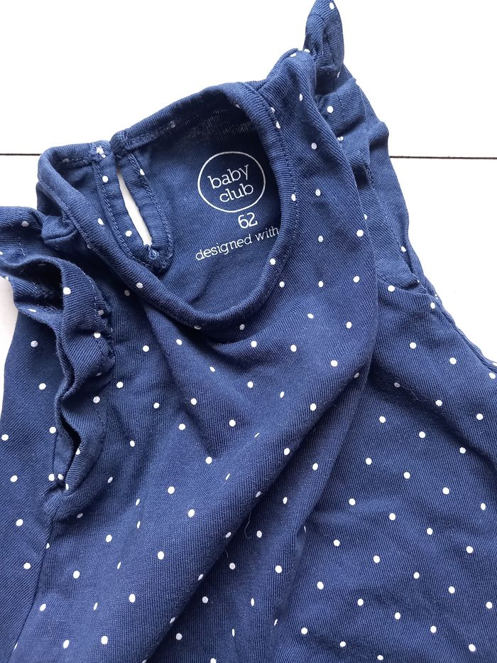 ☆ Manche courte ☆ Marque : Baby Club ☆ Couleur : Bleu marine à pois blanc ☆ Très bon état