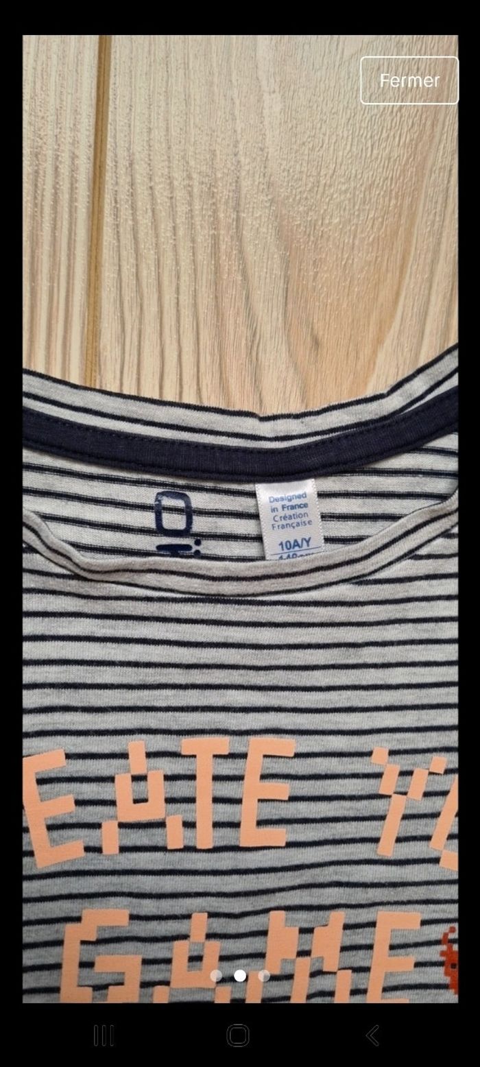 Motif pixel Manches courtes 10 ans Gris, rayé bleu