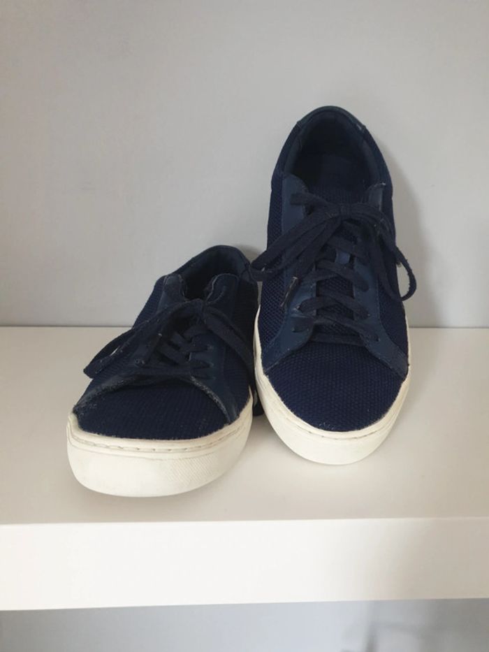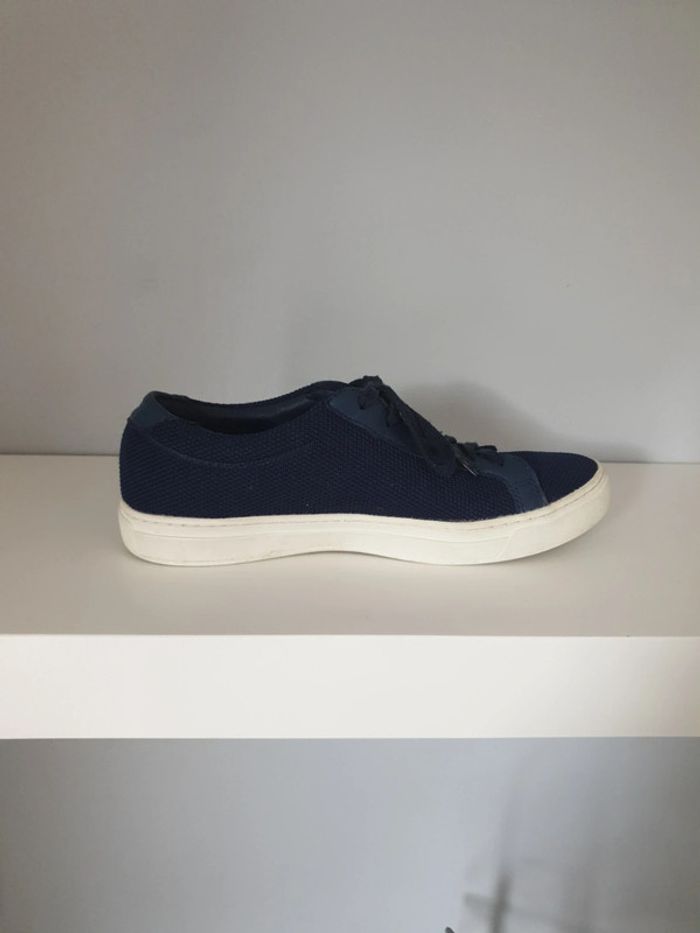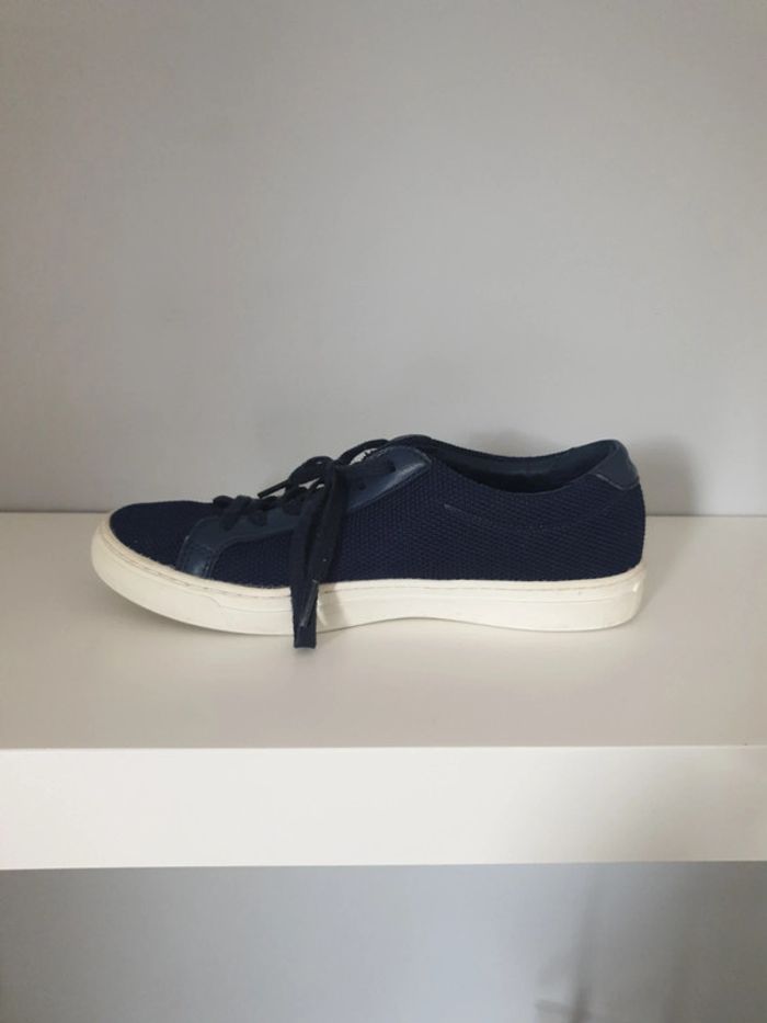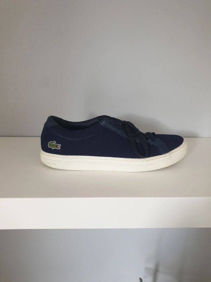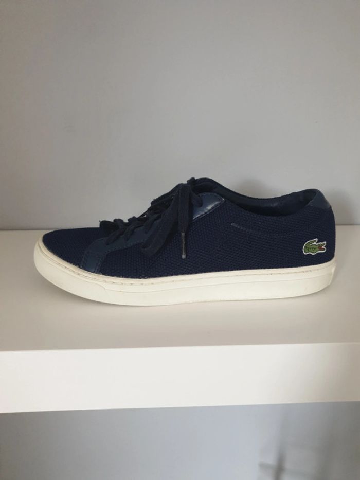 Basket LACOSTE Taille 38 Etat satisfaisant, porte assez souvent donc qq traces d usures, voir photos Assez étroites pour un 38 Bleues marines Tissu