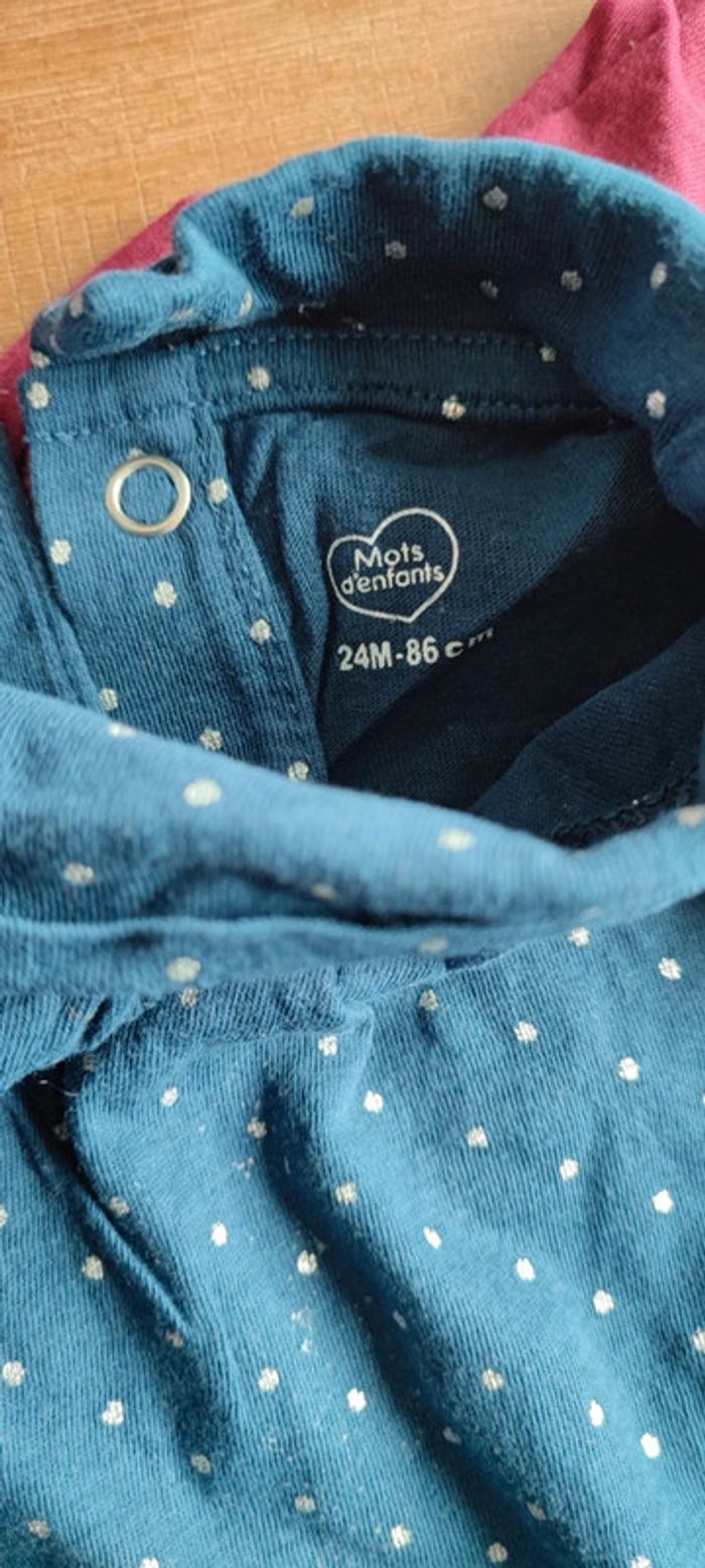 Lot de 2 sous-pulls mini col roulé , manches longues Un bleu marine a pois Un rose prune avec inscription Petit chat 🐱 Bon état Taille 24 mois Marque Mots d'enfants Envoi rapide #cyboulette44fille24mois