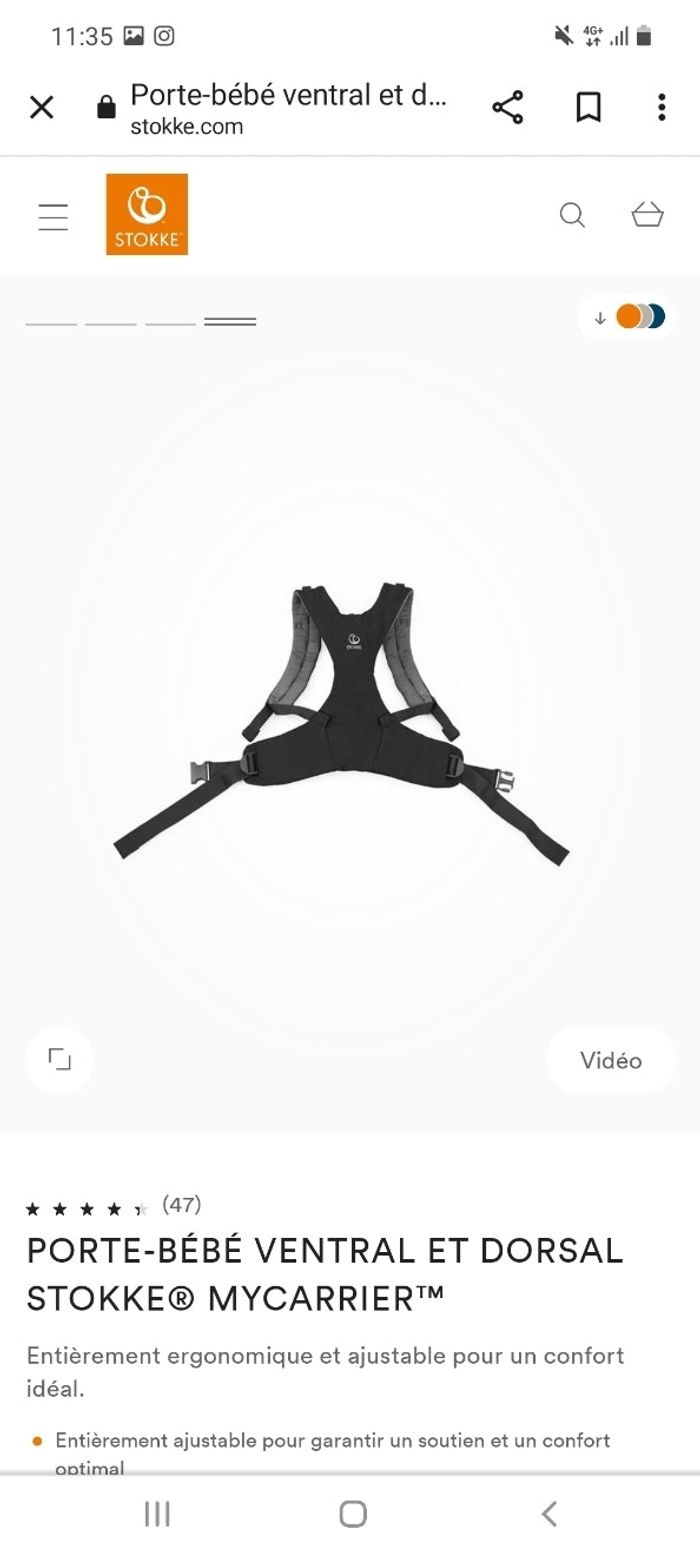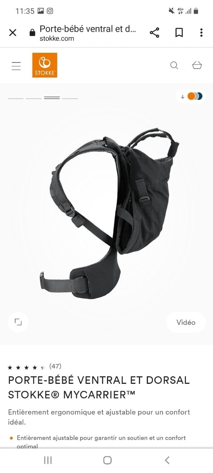 Porte bebe stokke de couleur noir , comme neuf juste servis 2fois . Jamais en porte bebe dans le dos car j'ai aussi un porte bebe pour la randonnée ! Identique à la photo . Hyper confortable (autant pour les parents que pour l'enfant) et aussi très pratique. A partir de 1 mois