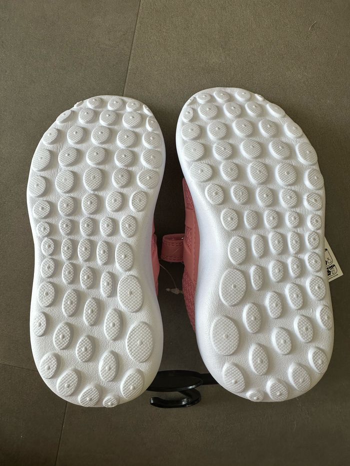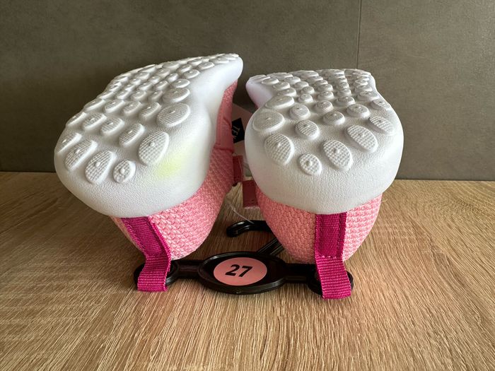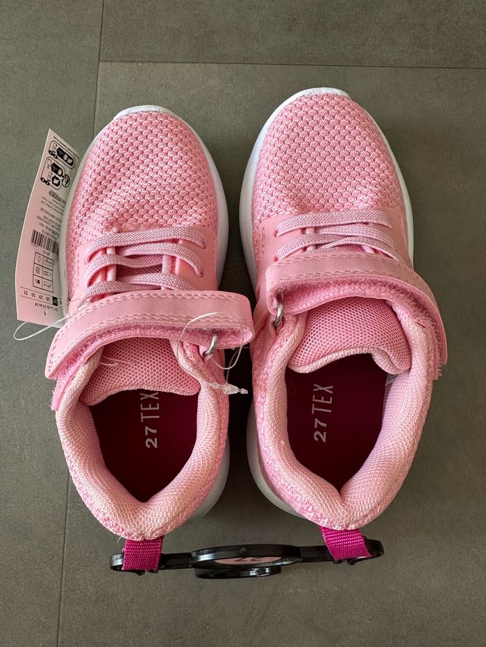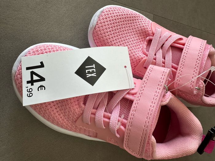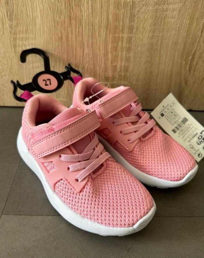 Baskets rose pointure 27, très légères. Neuves, juste une légère tâche derrière la chaussure gauche (voir avant derrière photo). 10€