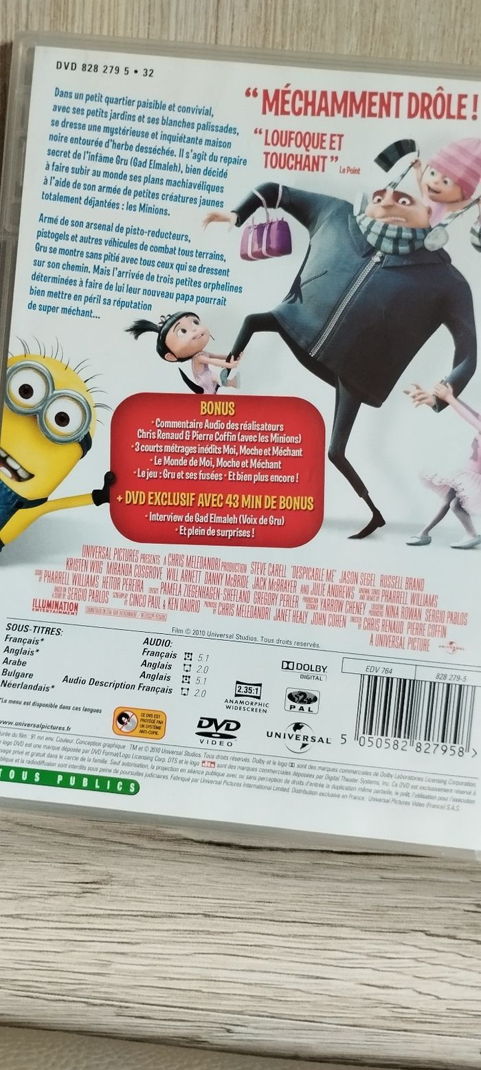 Super méchant, super marrant DVD avec bonus durée 2h35 Moi, moche et méchant avec la voix de Gad Elmaleh. Parfait état.