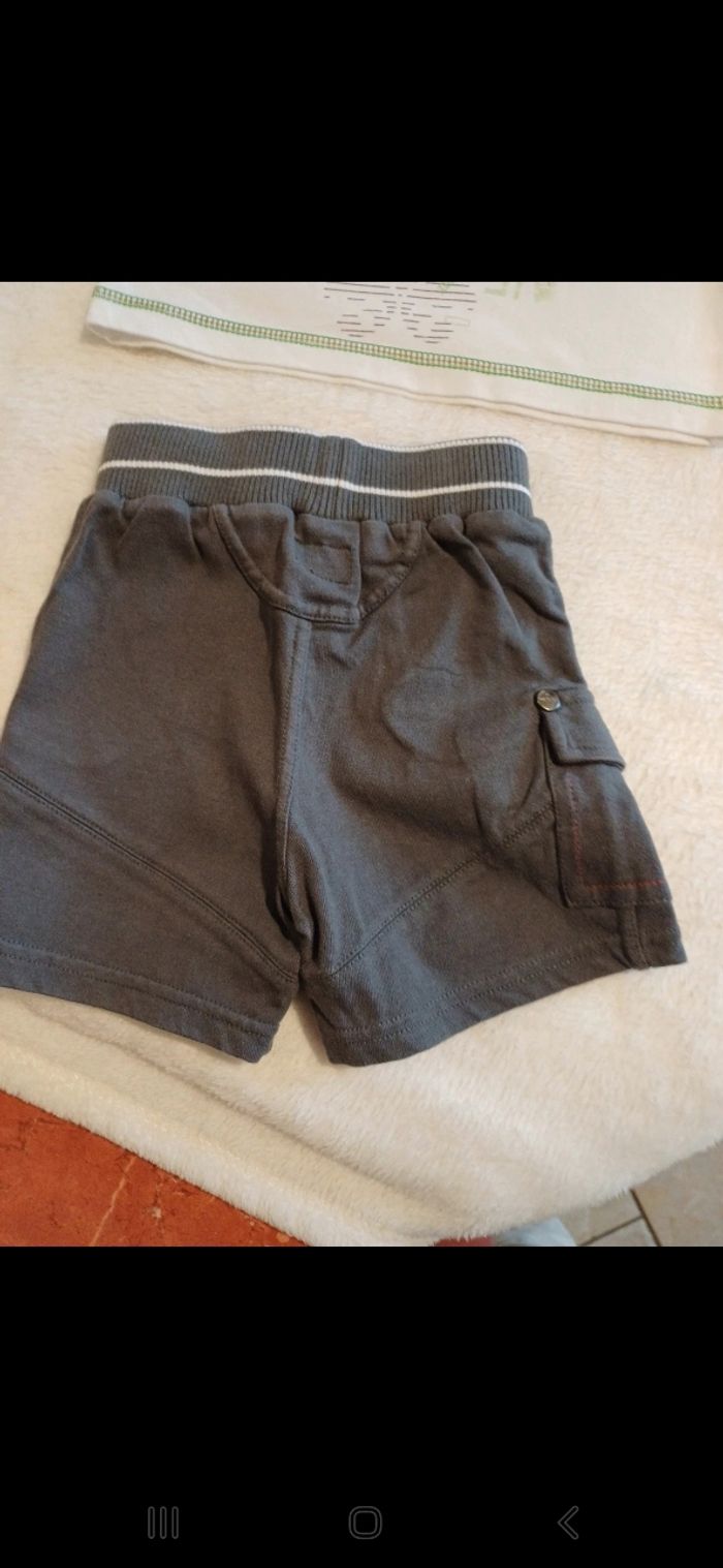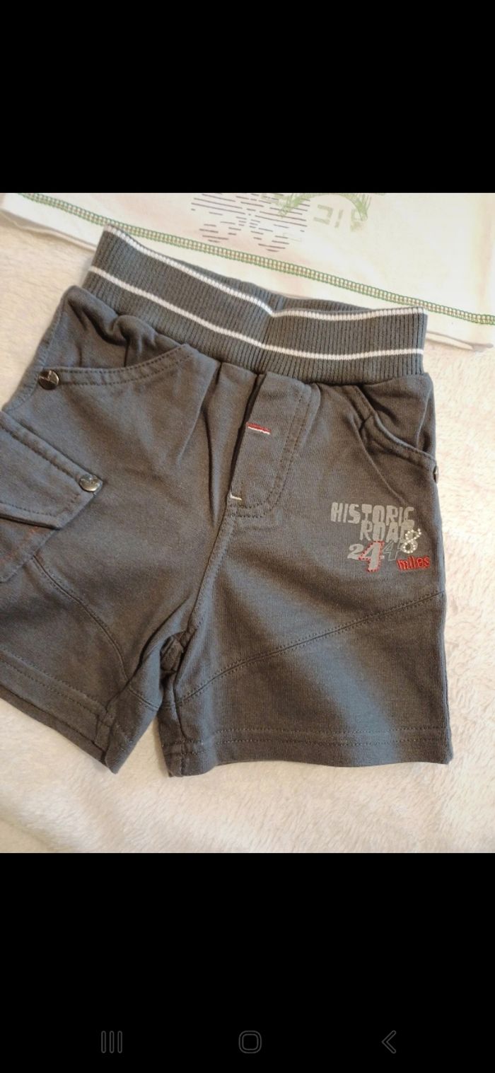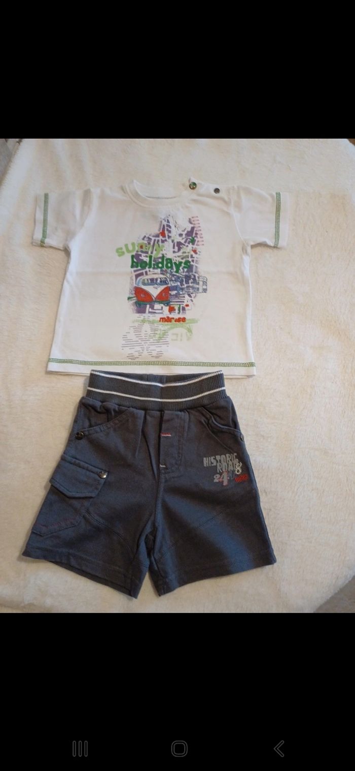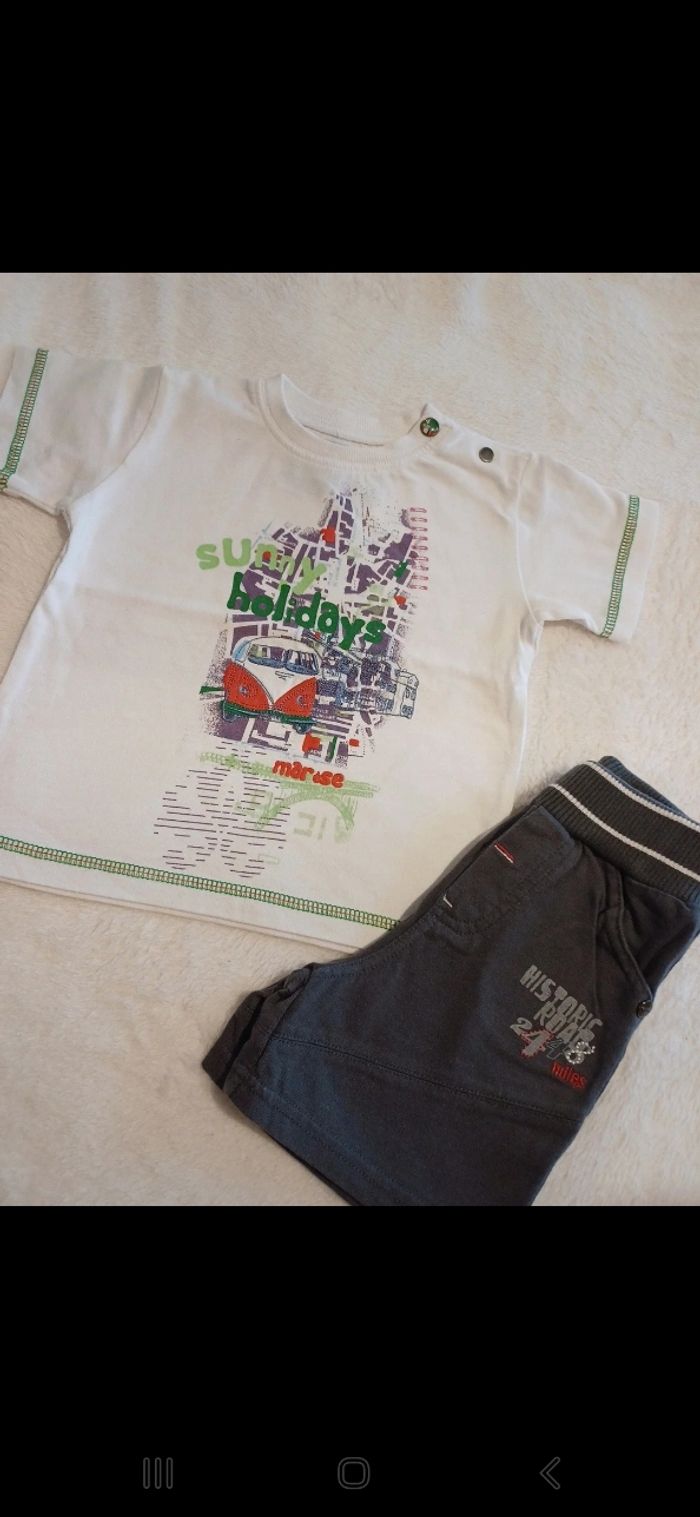 Ensemble comprenant un t.shirt manches courtes avec motif à l avant et pressions à l encolure et un short elastiqué à la taille. Comme neuf