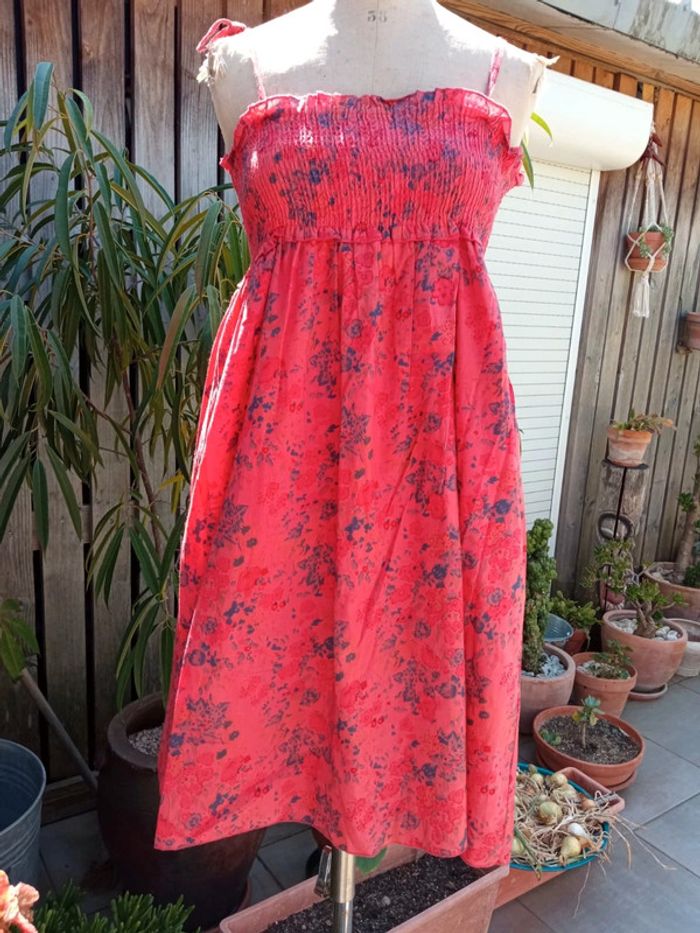 Robe corail. Poitrine smockée. Taille 36/38 Très bon état. #mathigelfemme36