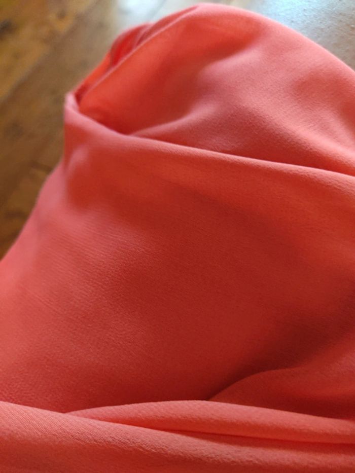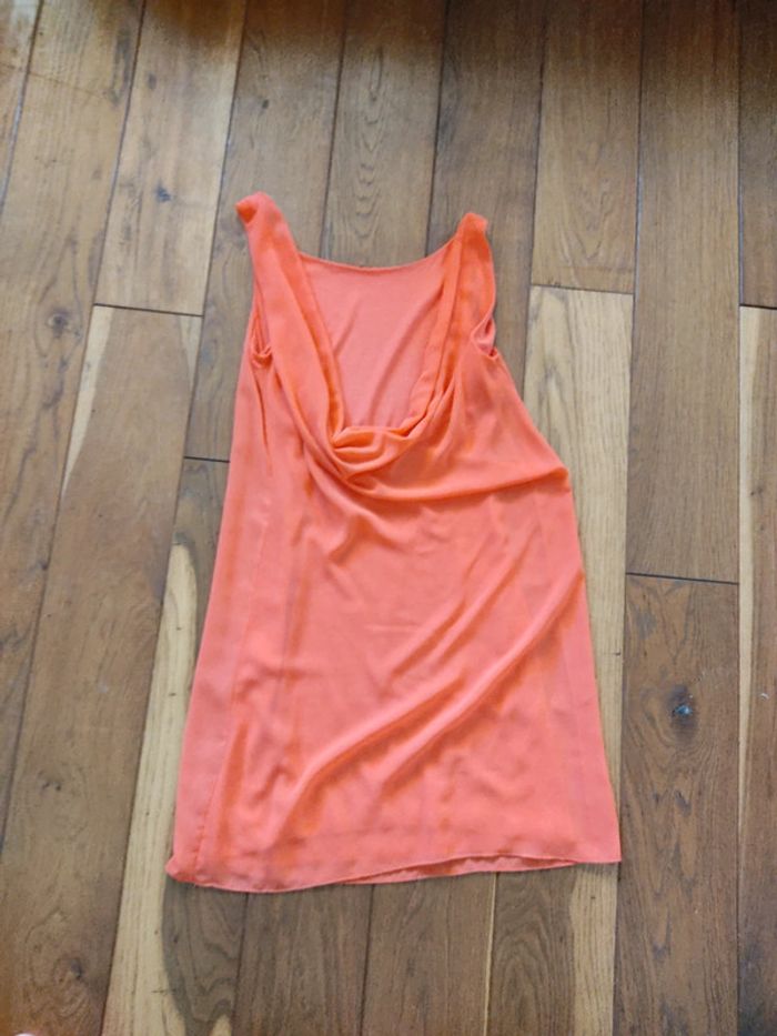 Robe droite dos nu bateau. Matière fluide. Doublure viscose. Taille 38. Excellent état. Couleur corail. Étiquette coupée donc je ne me souviens plus de la marque (Naf Naf ou Morgane). #mathigelfemme38