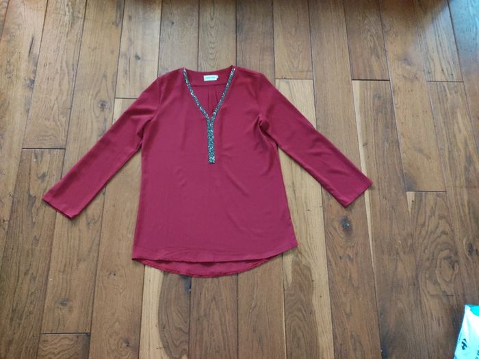 Tunique col strass. Bordeaux strass gris. Excellent état. Taille M/L #mathigelfemme38