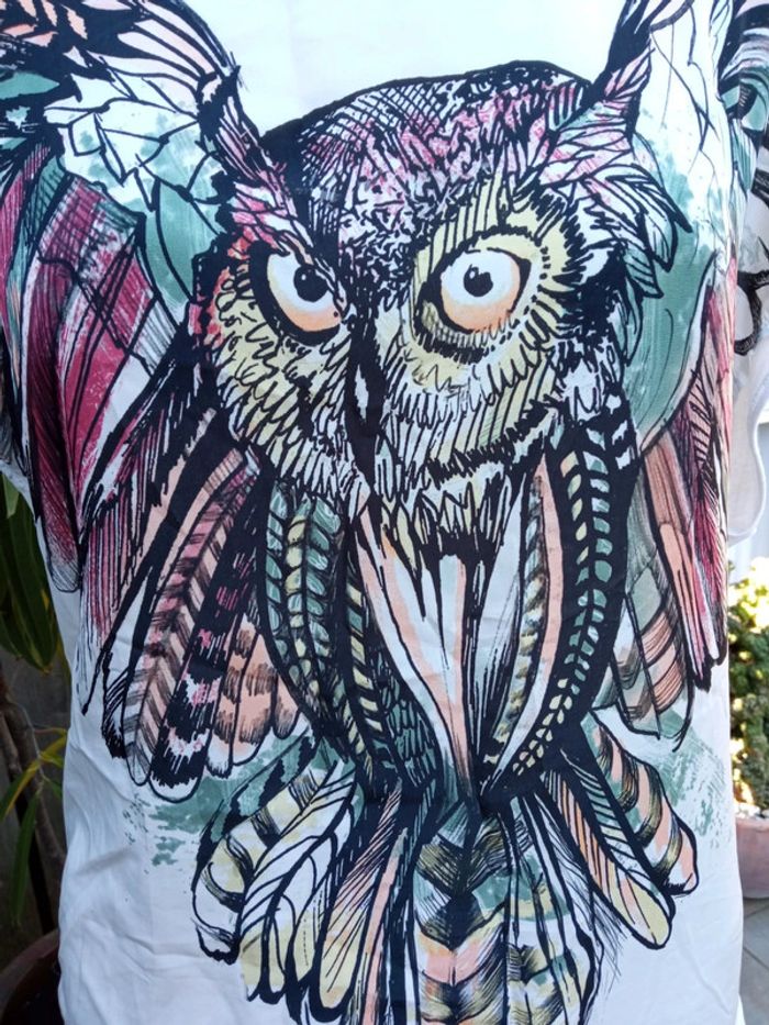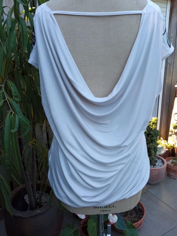 Blouse dos nu. Couleur ecru motif chouette. Viscose. Excellent état Taille M. #mathigelfemme38