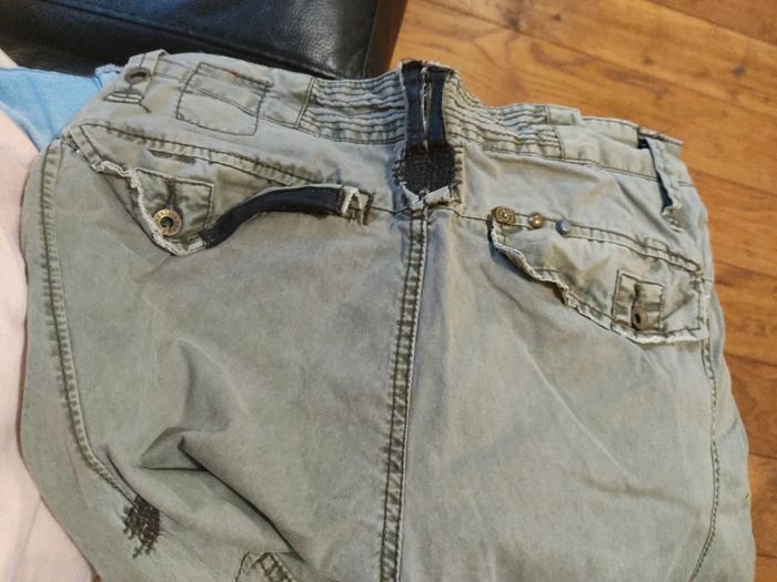Pantalon homme kaki. Pleins de détails. Coupe droite. Taille 40. Très bon état sauf une légère tâche sur la cuisse (derniere photo). #mathigelhommel #mathigelhomme40