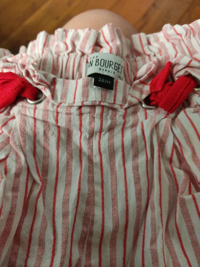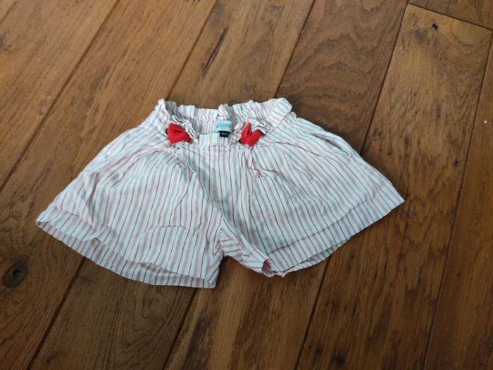 Short large Jean Bourget Blanc a rayure rouge métallisée. Poches laterales Taille 3 ans Très bon état. #mathigelfille3ans