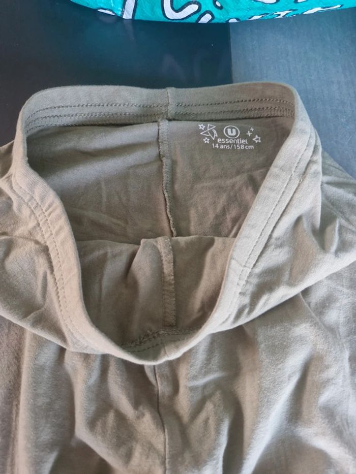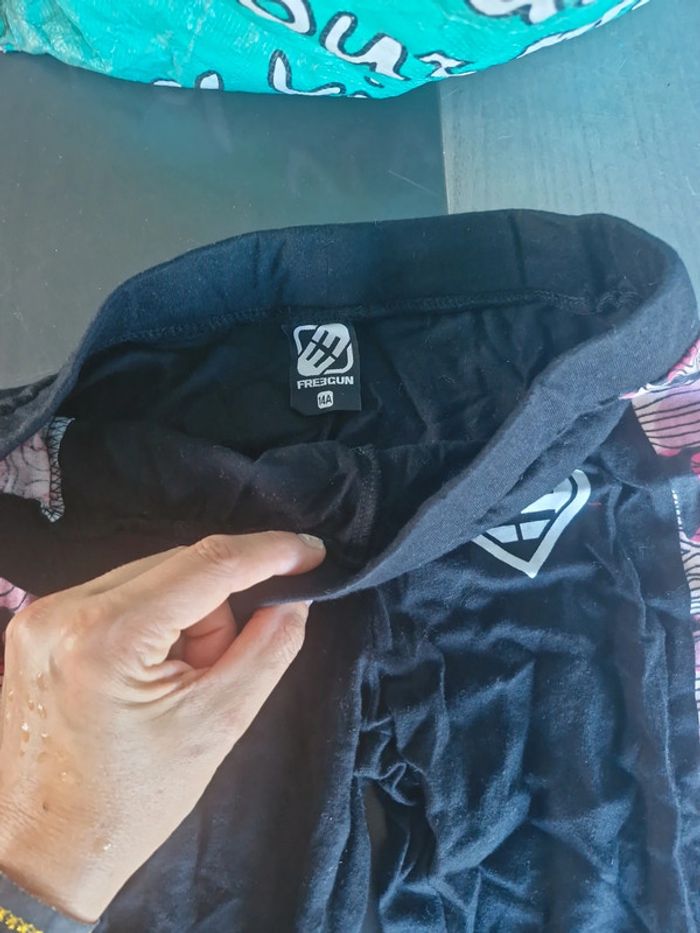 Vends 1 lot de 4 leggings longs et 1 legging court fille en taille 14 ans. 1 freegun 2 U collection 1 energetics 1 in extenso
