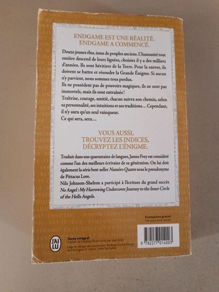 Endgame l'appel James Frey. Voici le lien pour voir tous mes livres : #romain75015_Livres. Envoi rapide et soigné bien protégé pour le transport. N'hésitez pas à faire un lot pour avoir des réductions et mutualiser les frais de port.