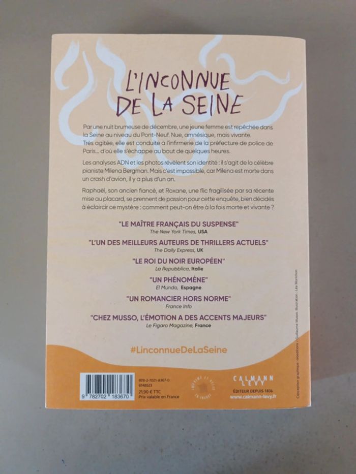 Guillaume Musso l'inconnu de la Seine. Livre grande taille. Prix neuf 21,90 €. Voici le lien pour voir tous mes livres : #romain75015_Livres et #romain75015_Guillaume_Musso. Envoi rapide et soigné bien protégé pour le transport. N'hésitez pas à faire un lot pour avoir des réductions et mutualiser les frais de port.