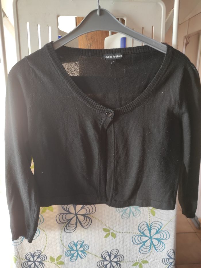 Gilet court noir Avec un bouton N'hésitez pas à regarder mon dressing pour faire un lot