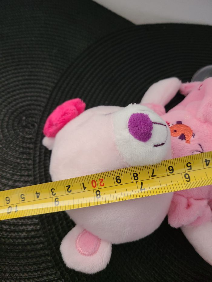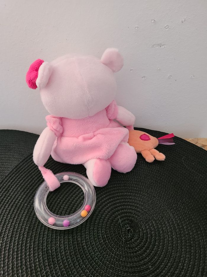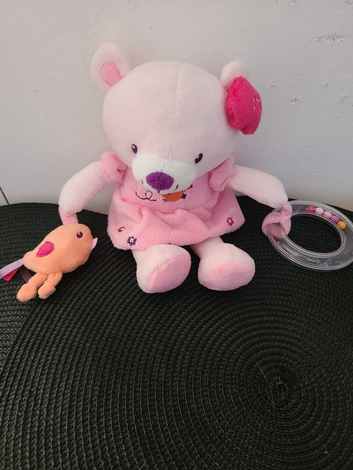 Ours POMMETTE doudou robe rose oiseau orange 14