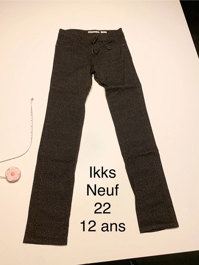 Pantalon slim gris noir imprimé léopard neuf ikks 12 ans - photo numéro 1