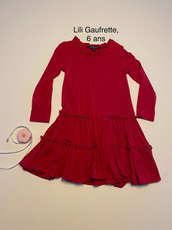 En excellent état, très peu portée, Magnifique robe rose Lili Gaufrette, Manches longues Réductions activées sur les achats en lot