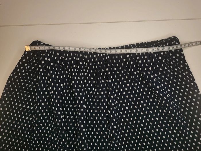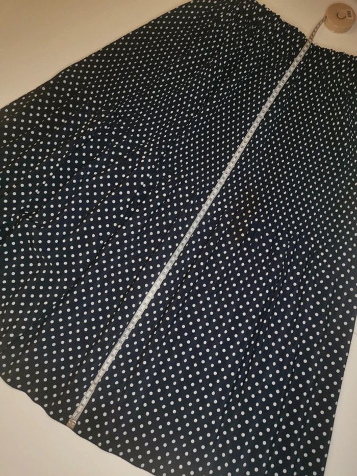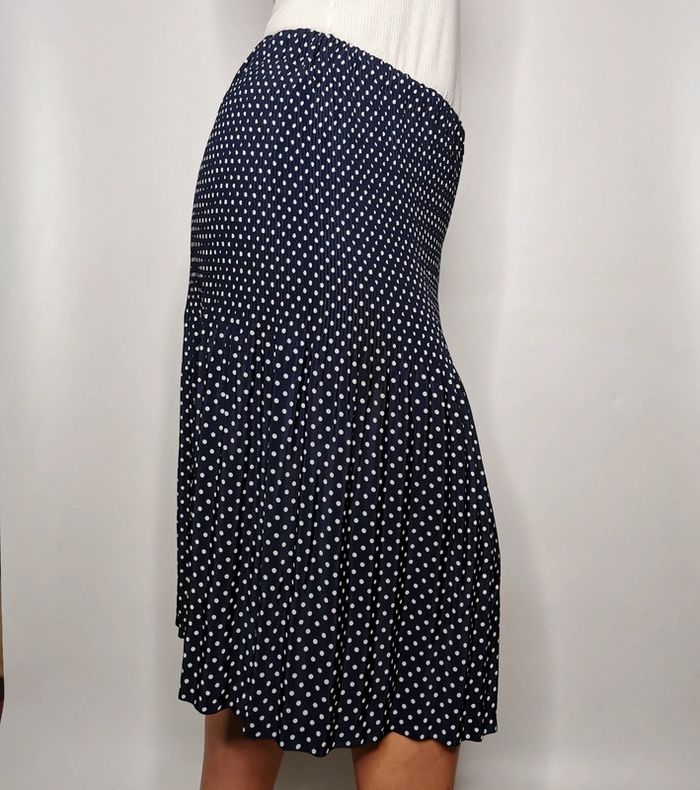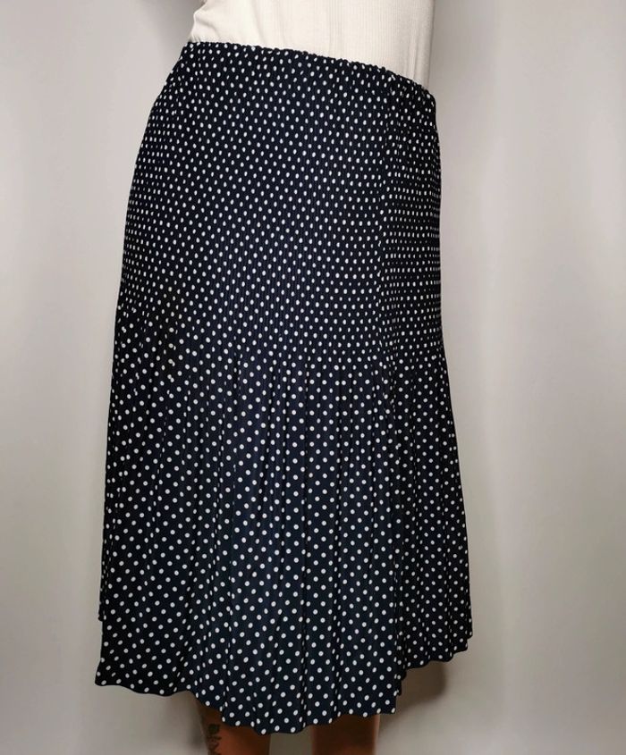 Jupe mi-longue vintage à pois bleu marine et blanche