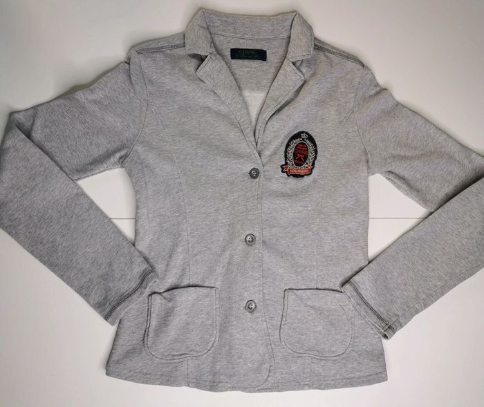 Très jolie blazers couleur gris avec écusson 100% coton Chipie - Convient à une taille M (je mets généralement du S ou M) Mensurations : Epaules : 39 cm Longueur : 57 cm Manches : 64 cm #cynthias11femme #femme #veste #blazer #chipie #vintagestyle #outfit #vintage #gris #ecusson #taillem #coton #soirée #tenuedesoiree #vintagedressing #chic #urgent