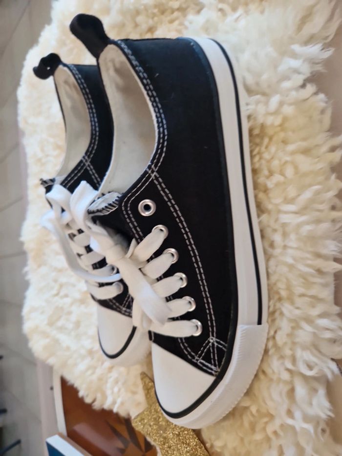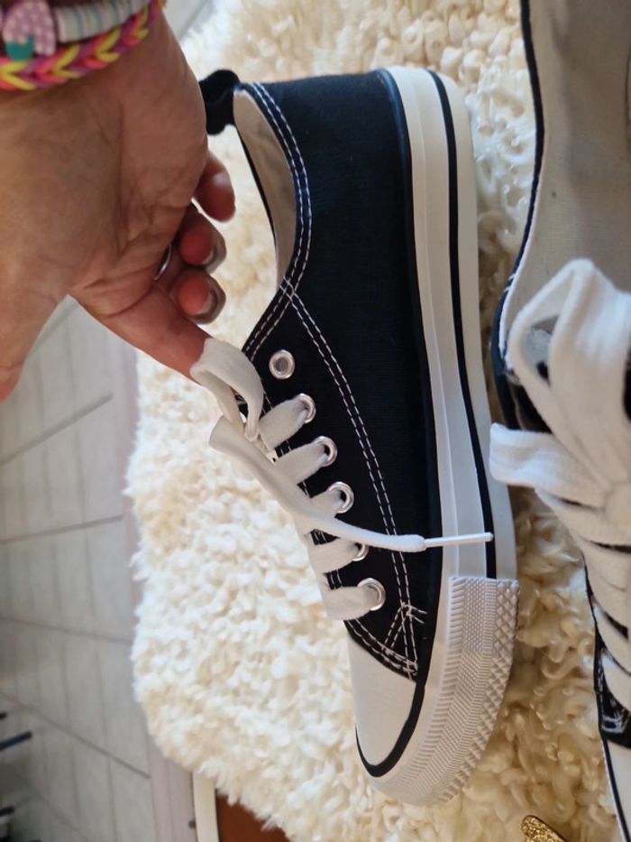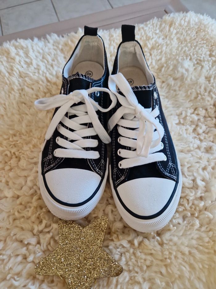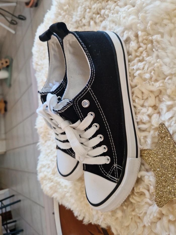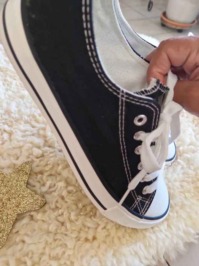 Paire de tennis basse avec laçage de 6 œillets. Bout de la chaussure et semelle en gomme avec un liseré noir. Modèle mixte. #ellaben_basketsfemme #ellaben_chaussurehomme