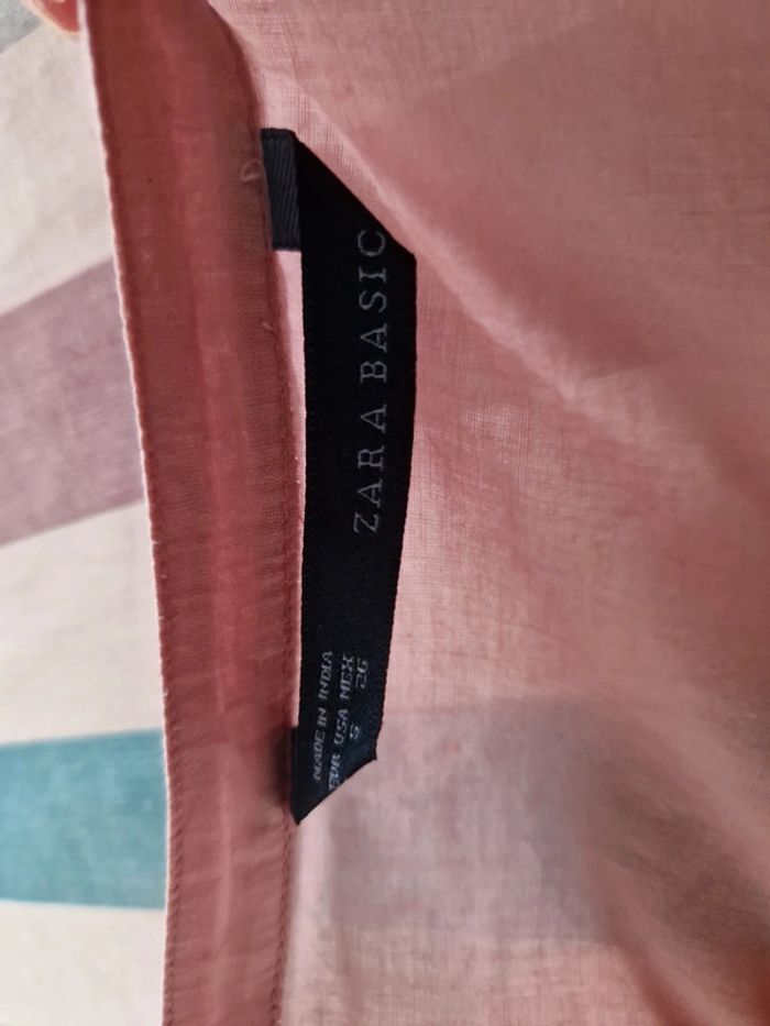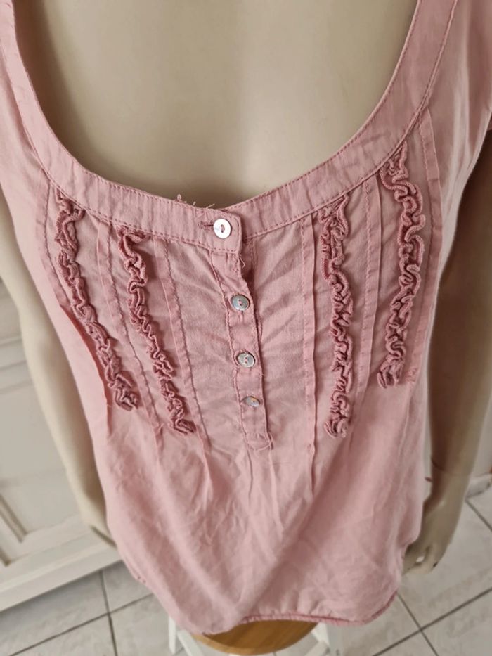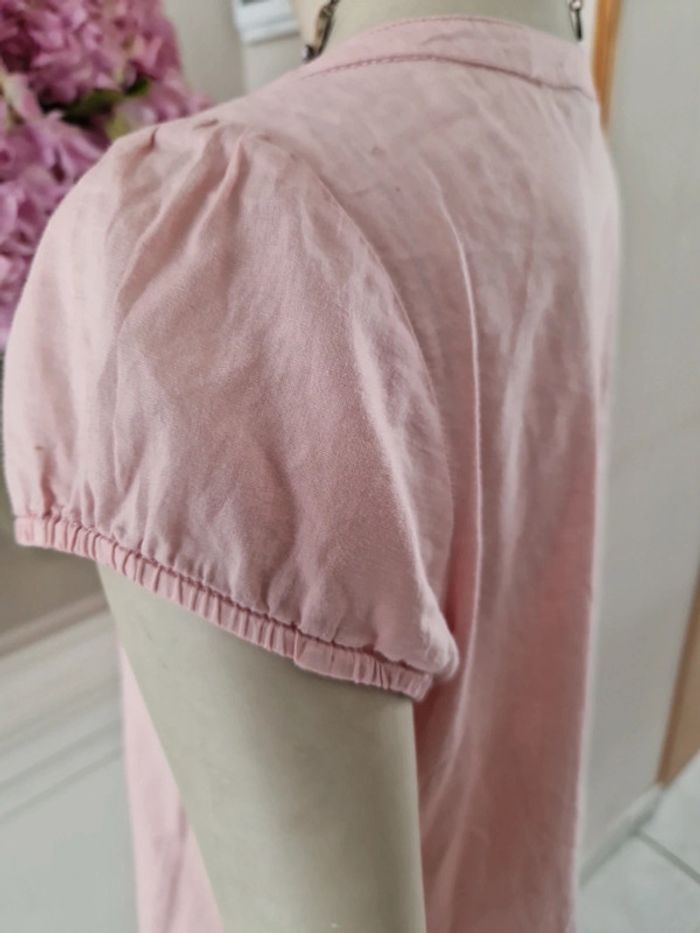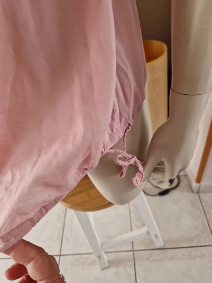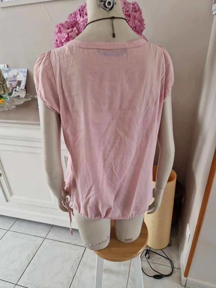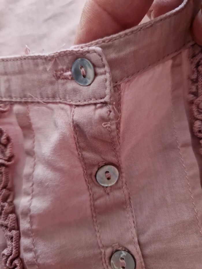 Jolie blouse de couleurs vieux rose avec des manches courtes. Rangée de boutons nacrés bordé de fronces sur les côtés. Lien de serrage en bas de la blouse. Se porte serré ou lâche. 100% coton. #ellaben_blousesfemmes #ellaben_articleszara