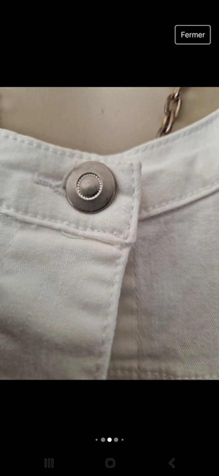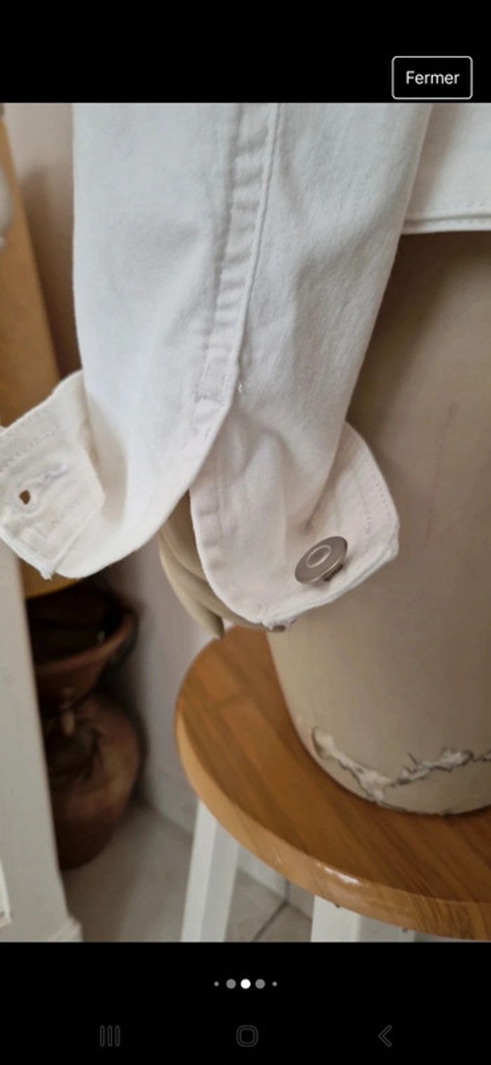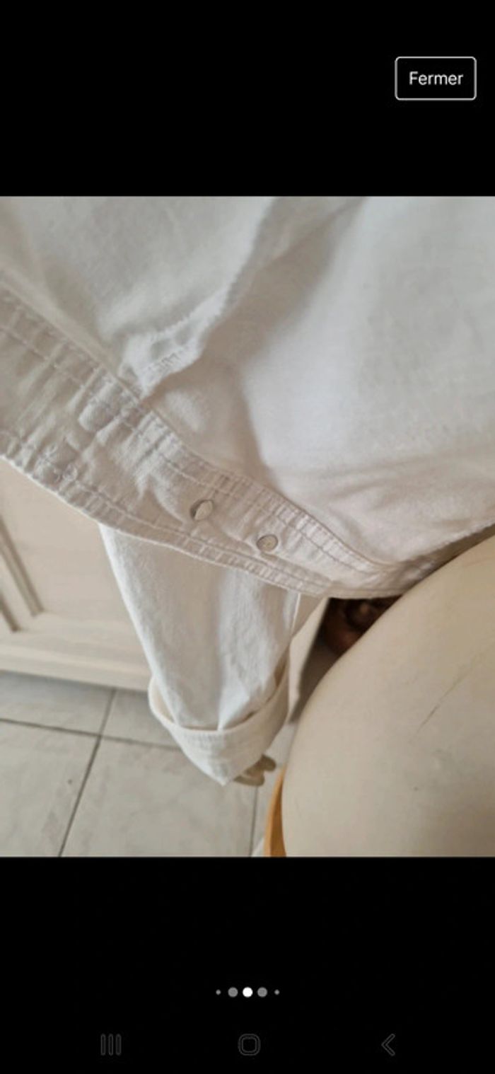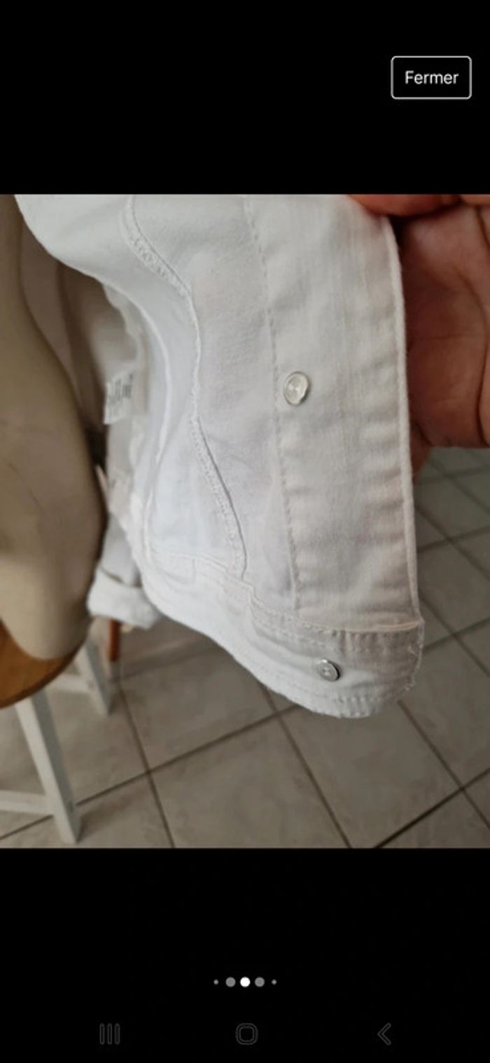Jolie veste blanche brodée avec deux poches à la poitrine . Manches longues qui se ferment par des boutons métalliques. Possibilité de resserré la veste avec un système de boutons à la taille. Veste 97 % coton et 3% élasthanne Jolie et très pratique. Taille 40/42 #ellaben_vestesfemme #ellaben_grandestailles #ellaben_blanc