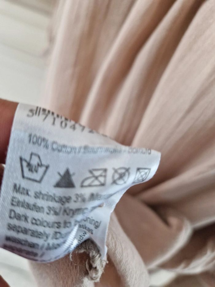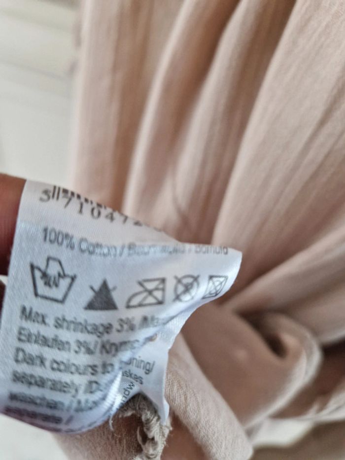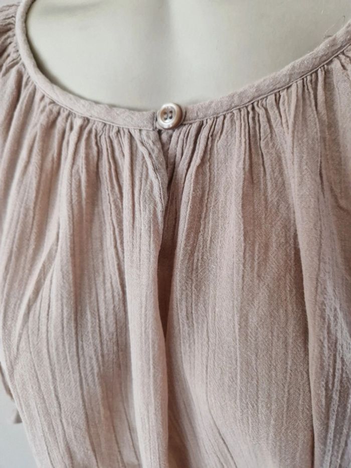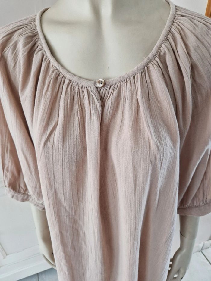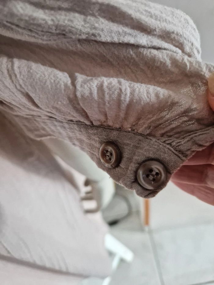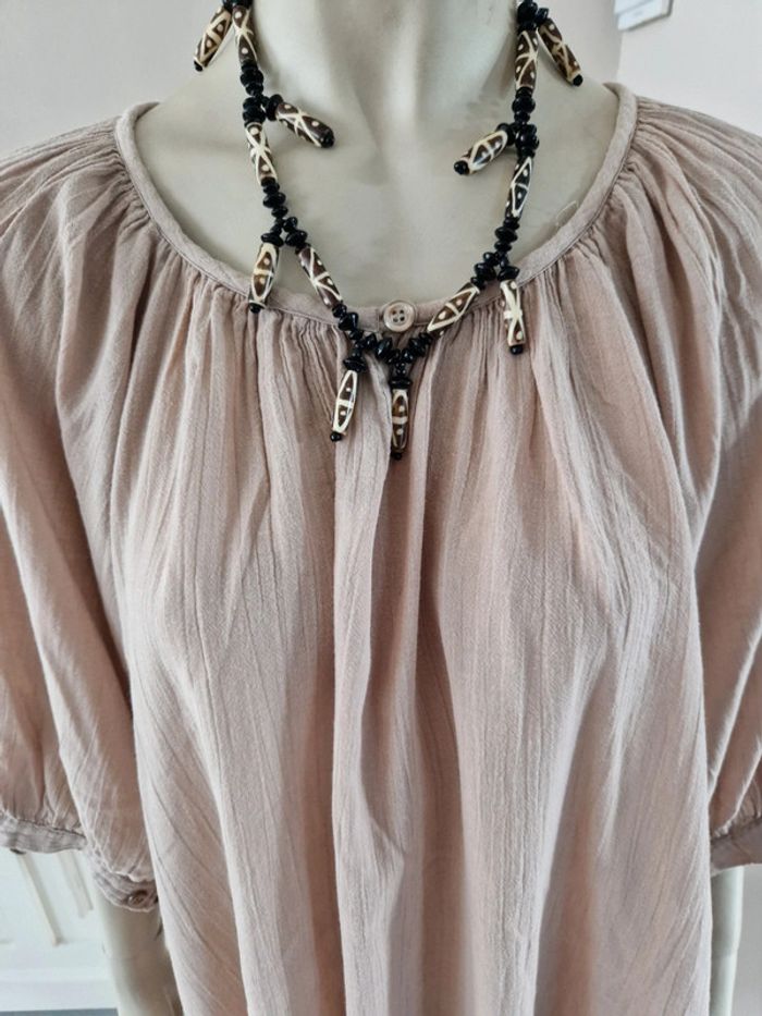 Jolie robe tunique de couleur beige. Encolure ronde fermée par u bouton. Manches trois quarts avec double bouton. Bouton de rechange sur l'étiquette. Robe 100% coton #ellaben_robes