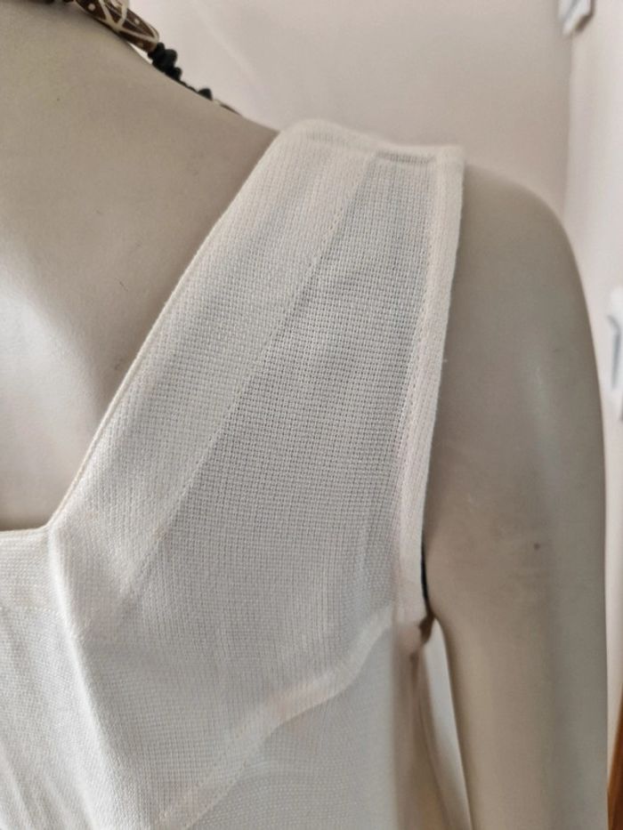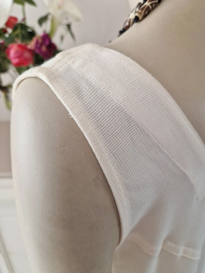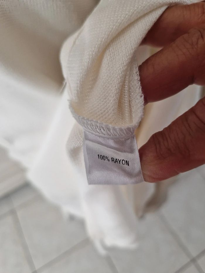 Jolie robe maxi de couleur crème. Style bustier en haut et sur le bas très évasée. Une fente sur chaque côté. Très fluide et matière très agréable pour l'été 🌝 Robe 100% rayonne. La rayonne est une fibre textile tiré de la viscose et fabriqué à partir de fibres naturelles. Elle est aussi appelée soie artificielle. Elle est soyeuse lumineuse et légère. Robe qui vient de l'étranger. Taille 38/40 #ellaben_robes #ellaben_blanc