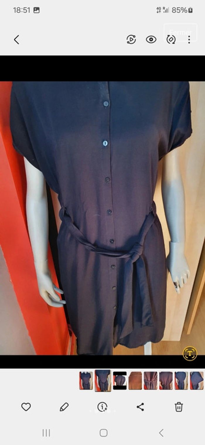 Jolie robe 👗 chemise boutonnée du haut en bas sur le devant Ceinture qui se termine par deux pans pour ajuster la taille. Tissus 100% viscose qui tombe très bien. Matière agréable à porté. Robe neuve jamais mise mais uniquement laver Taille 38/40. #ellaben_robes #ellaben_robesnoir