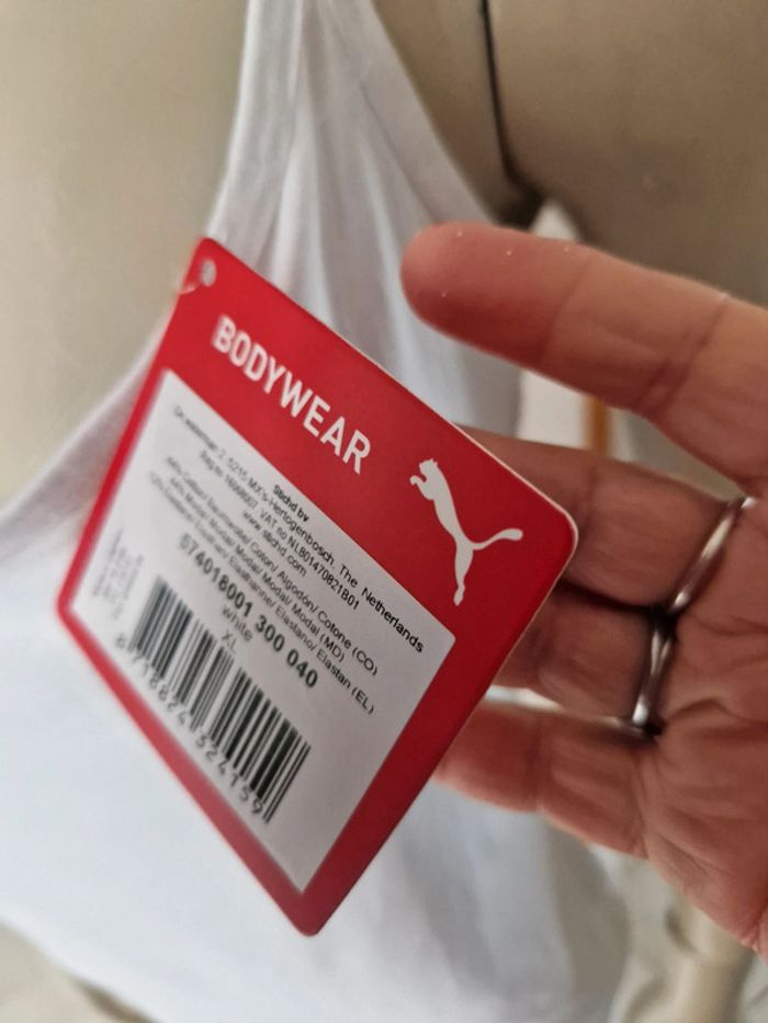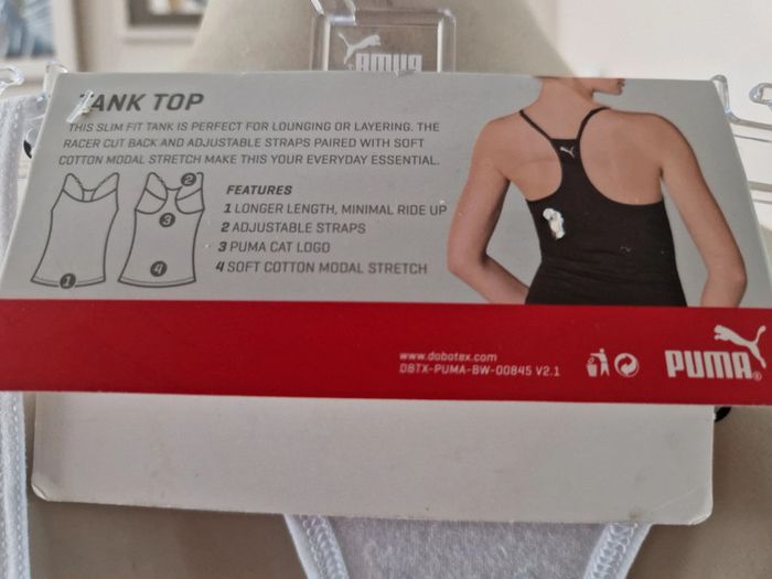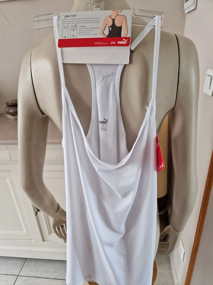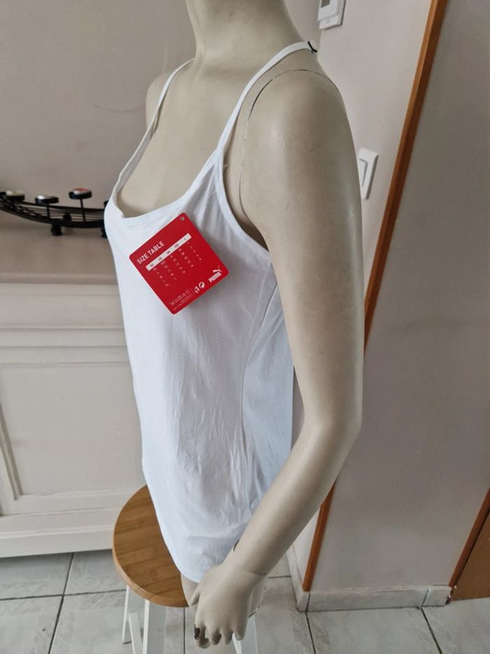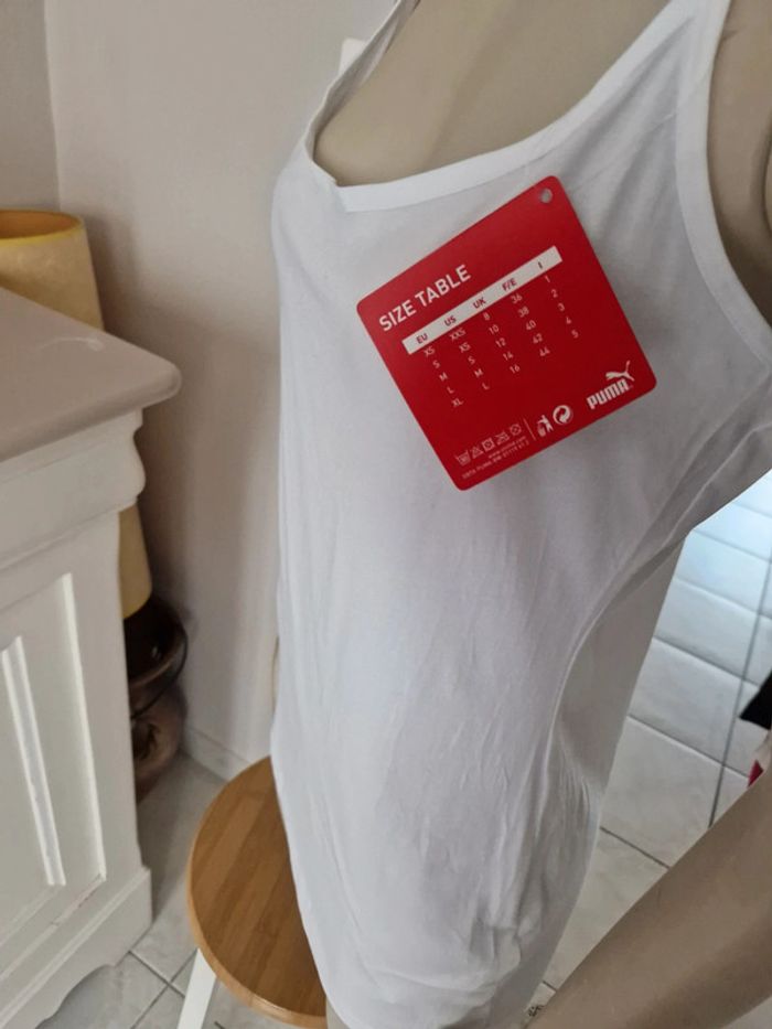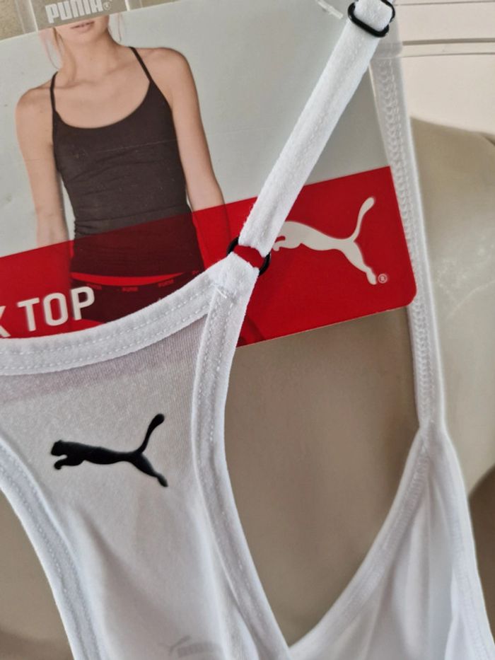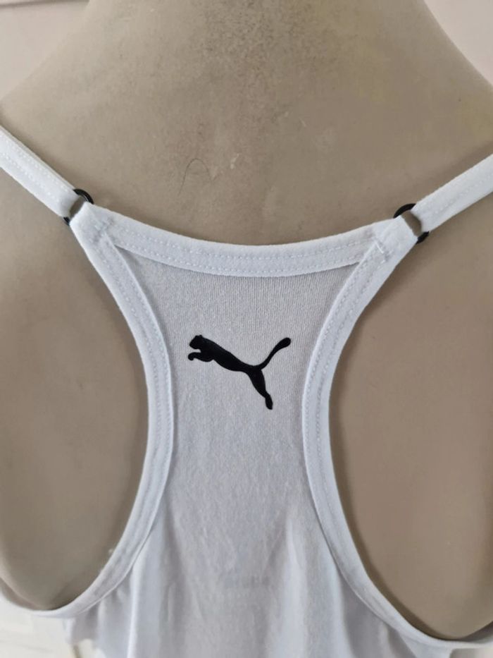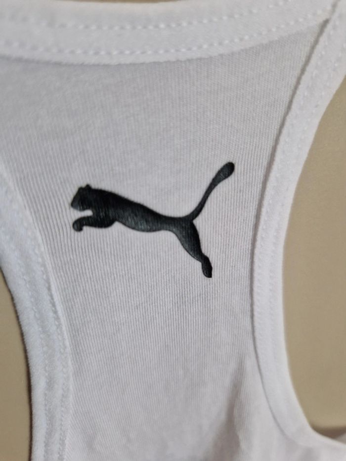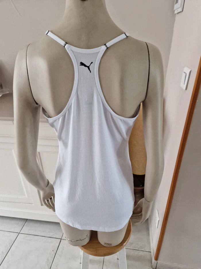 Top blanc de marque Puma en coton modal et élasthanne. Logo de la marque dans le dos. Pratique et confortable pour la pratique des sports. #ellaben_tchirtfemme