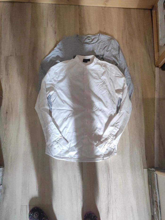 Un t-shirt manches longues gris et une chemise col tunisien le tout en taille S état correct n'hésitez pas à regarder mon dressing j'ai d'autres article et réductions sont activées 😉