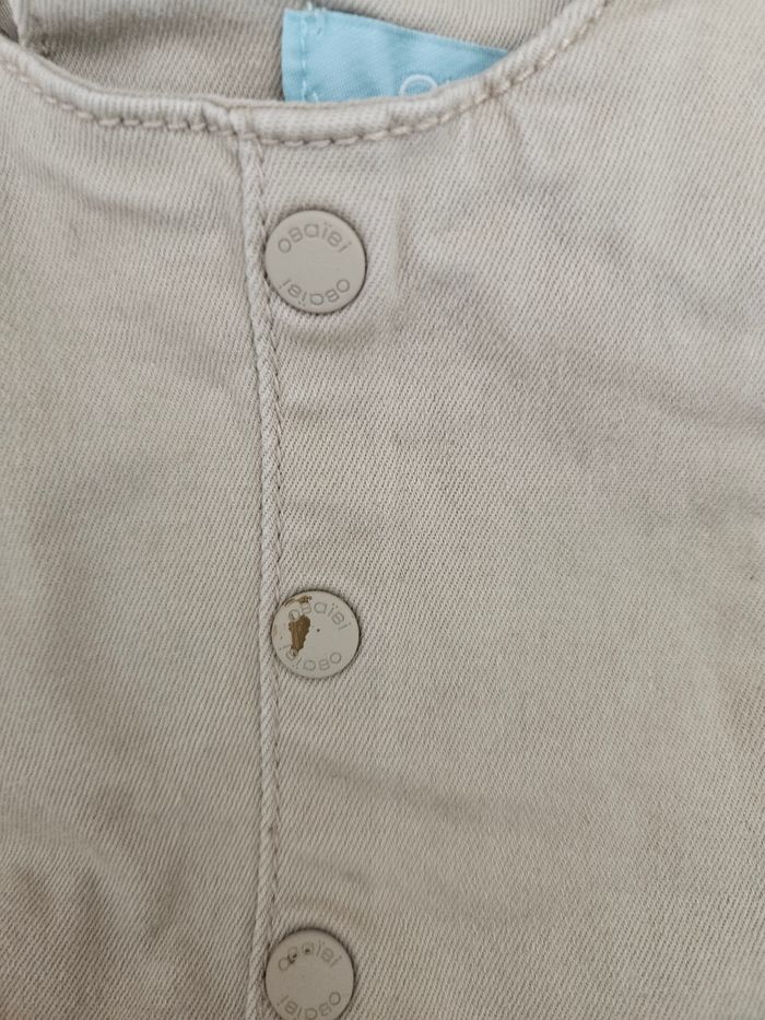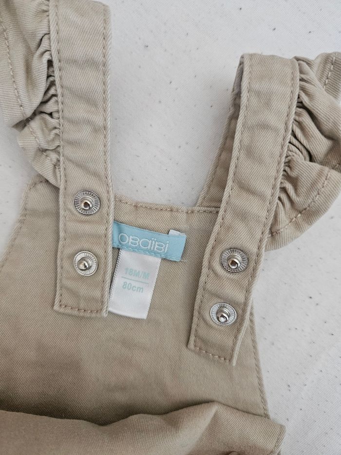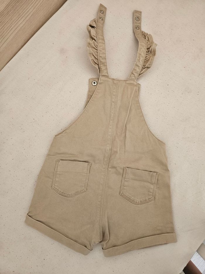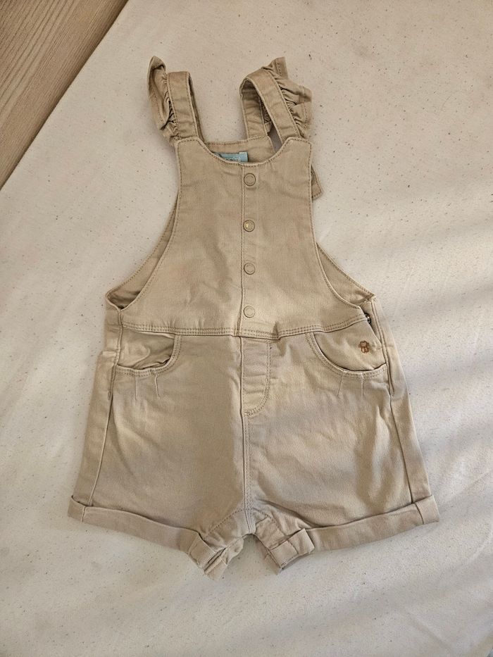 Combishort en jean, en très bon état La peinture s'est effacé sur un bouton (dernière photo) Réglable au niveau des bretelles Taille 18 mois