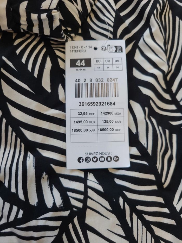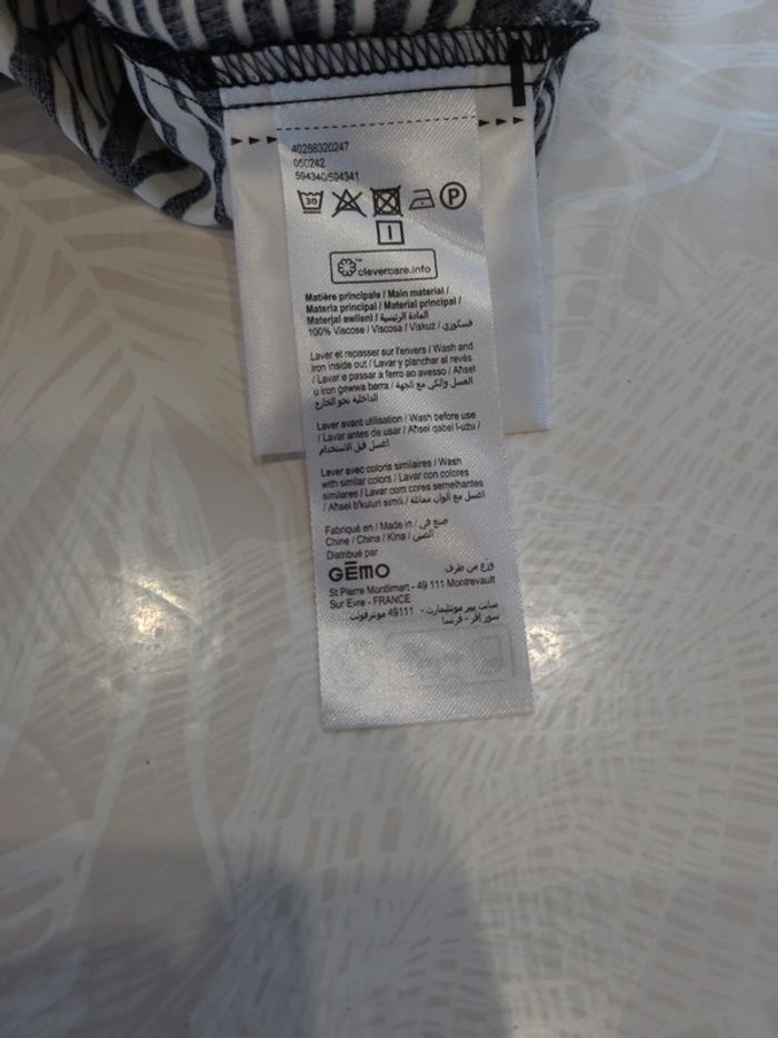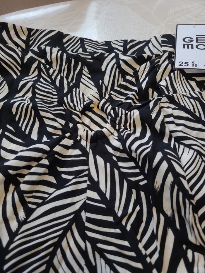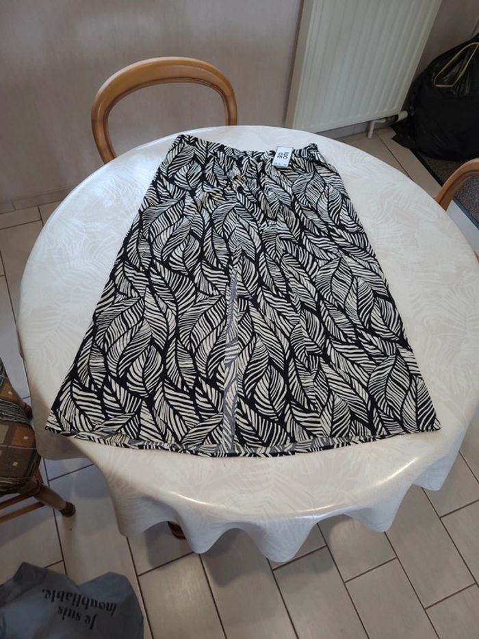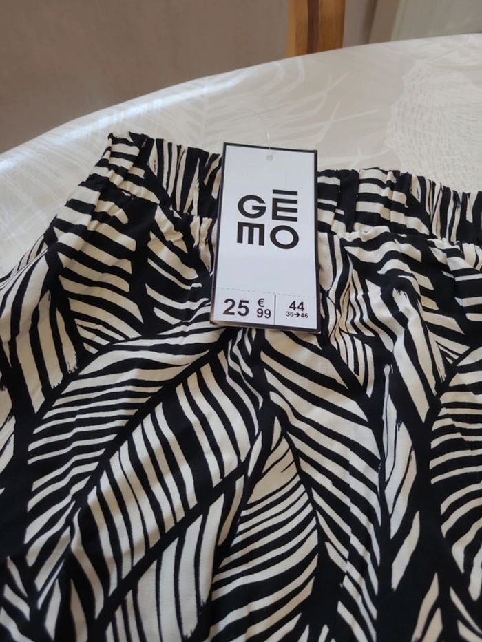 Jupe longue Marque Gémo Neuve. Prix magasin : 25,99 euros Matière légère et agréable, 100 % viscose. Taille 44. Dimensions à plat : Taille elastique 42 cm Bas de la robe 75 cm Hauteur 85 cm Envoi rapide et soigné. Caisse P3