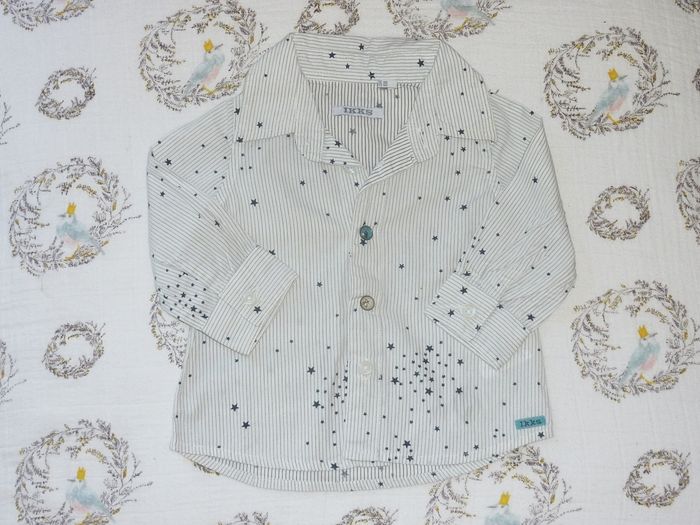 Chemise d'occasion en excellent état de marque IKKS, grise, chic, alliant rayures et étoiles Exellent état Ikks Vide dressing professionnel