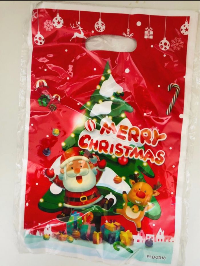 Lot de 5 petits sacs cadeaux plastiques Merry Christmas