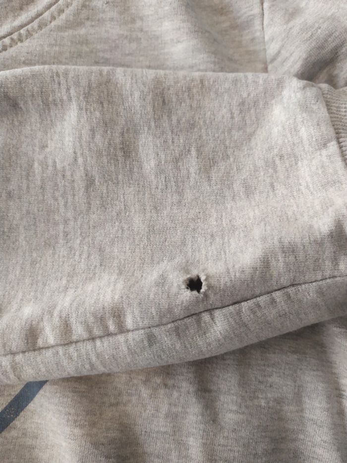 Etat satisfaisant Petit trou a la manche. Peut se réparer mais je ne suis pas couturière 😪😪