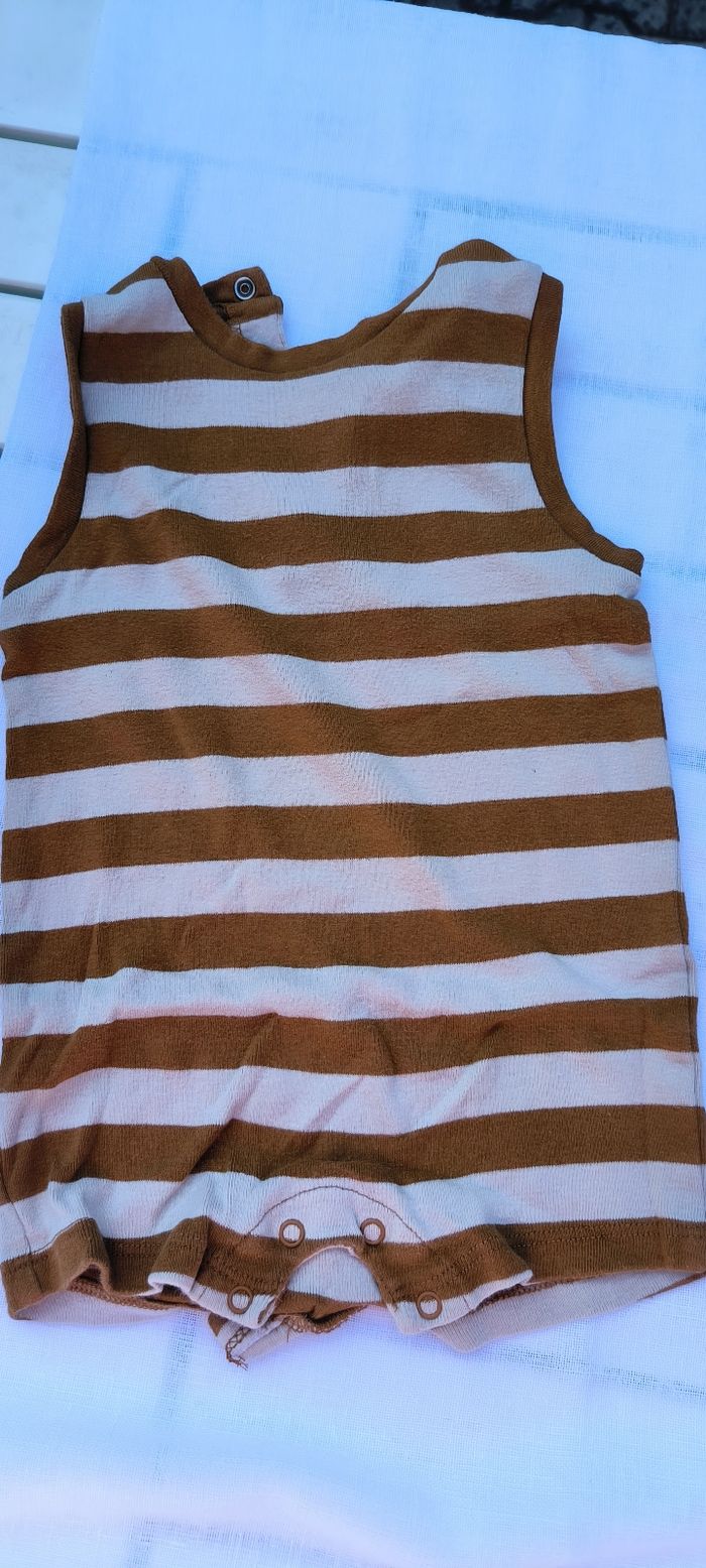 Lot de 2 barboteuses manches courtes (1 beige et marron/1 grise) 12 mois Vertbaudet