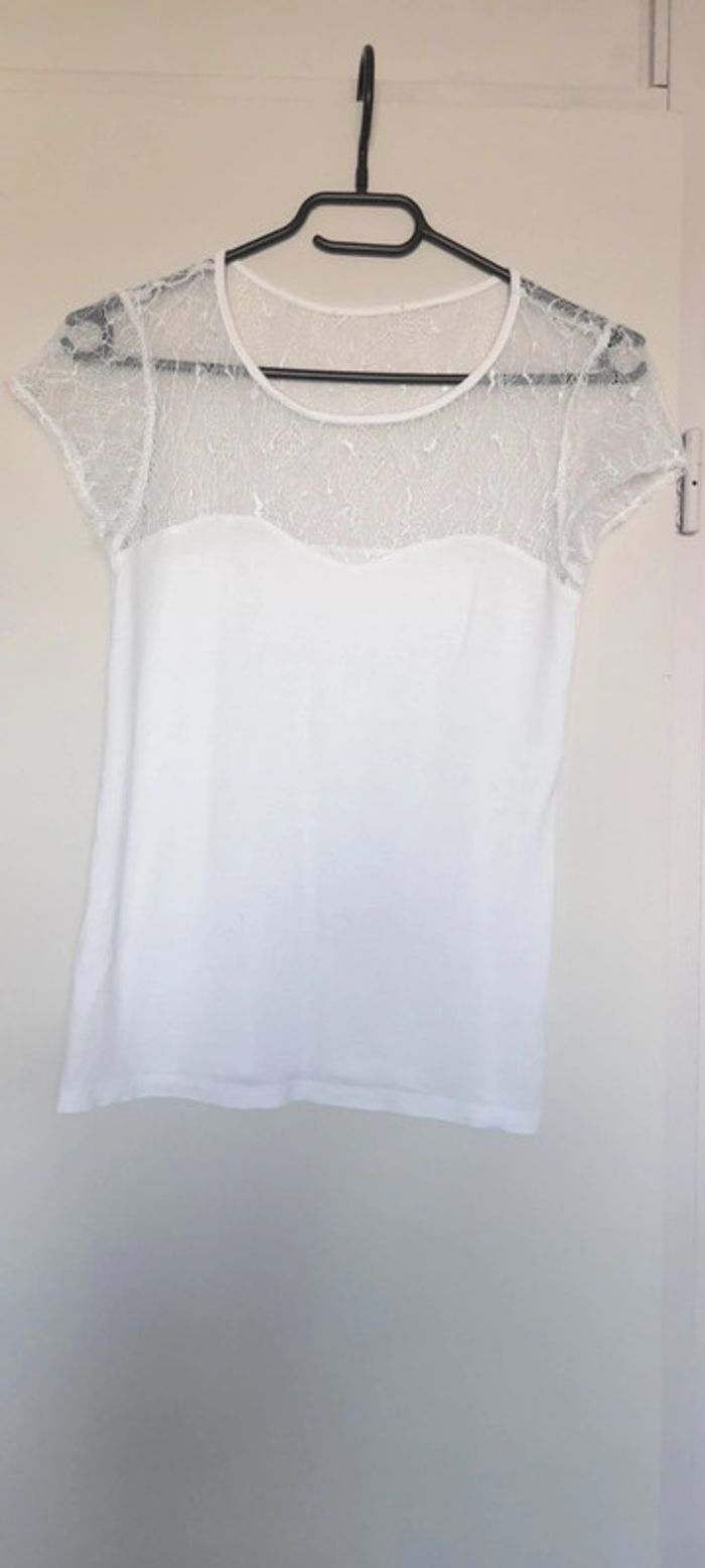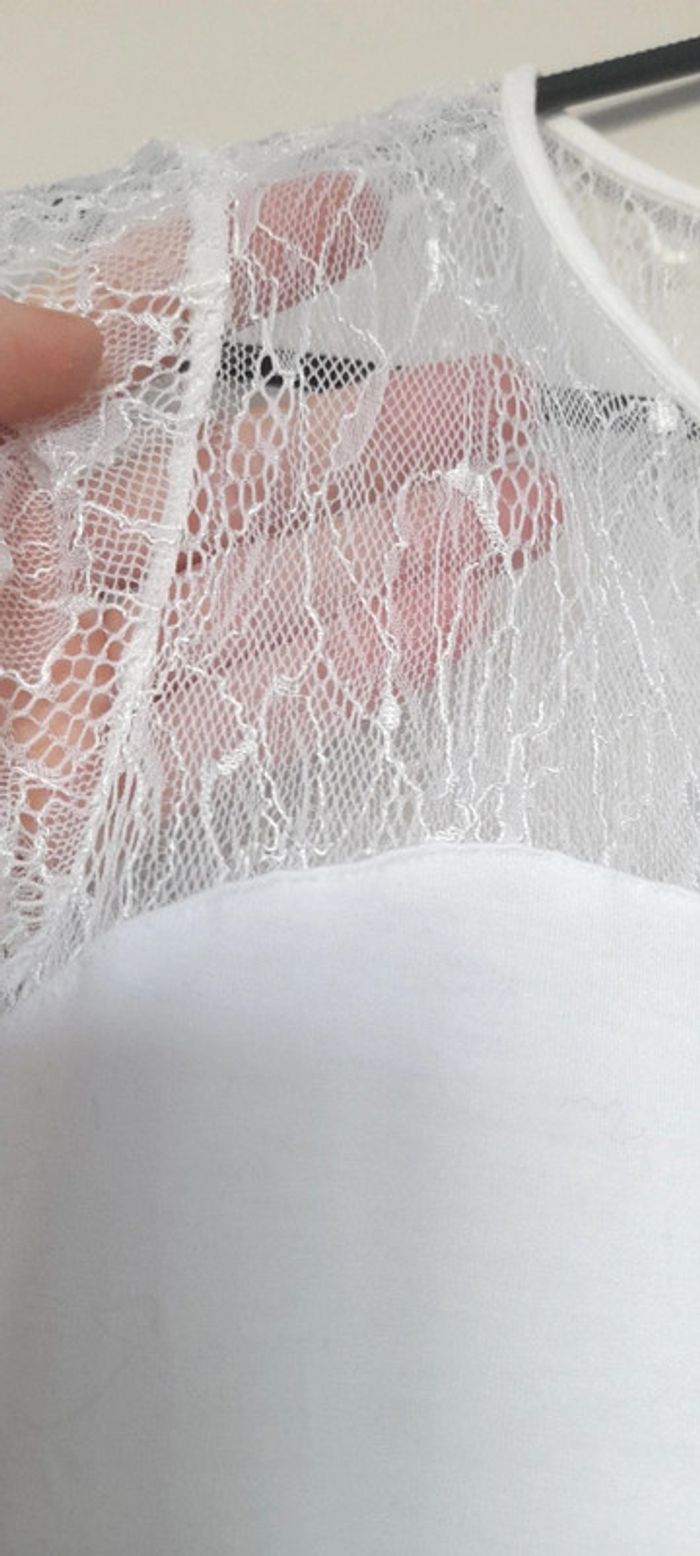 T-shirt blanc tout le haut devant derrière et en dentelle porter une seule fois
