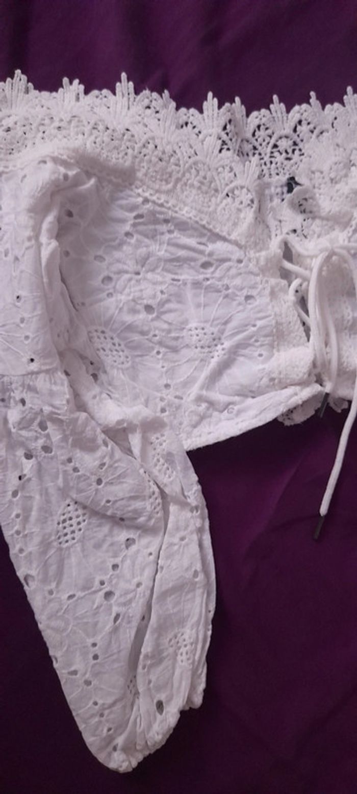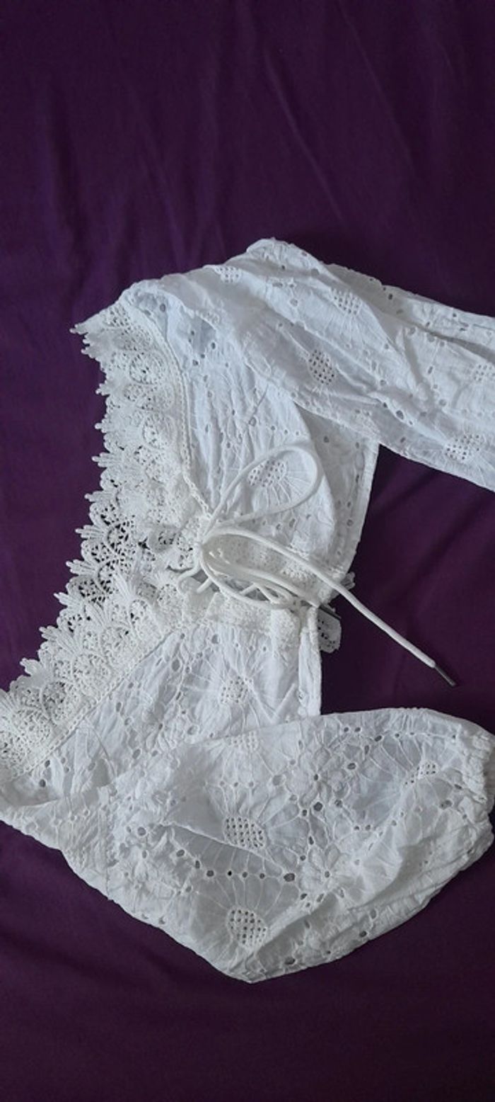 Top cours en dentelle à lacets devant manches longues épaule dénudée à jamais porté mais déjà lavé
